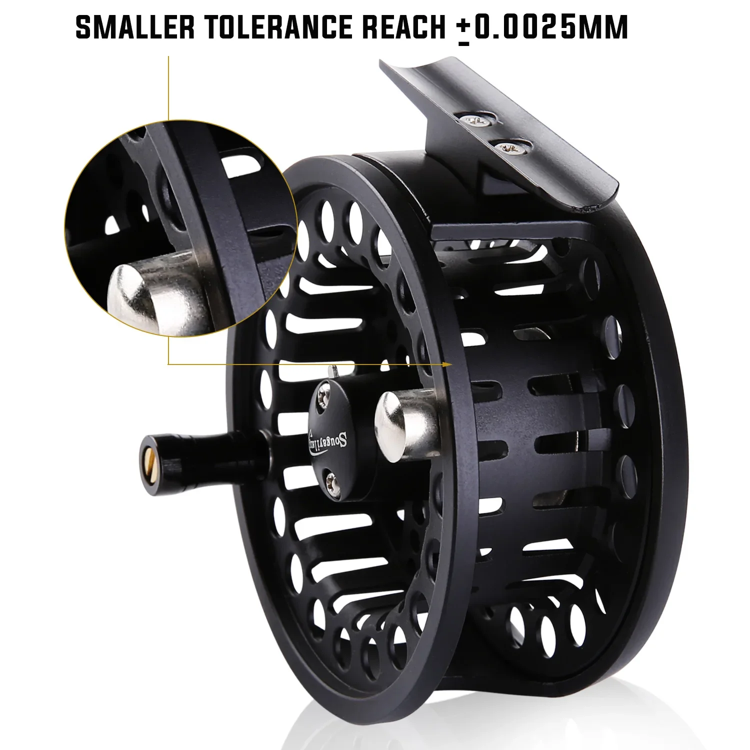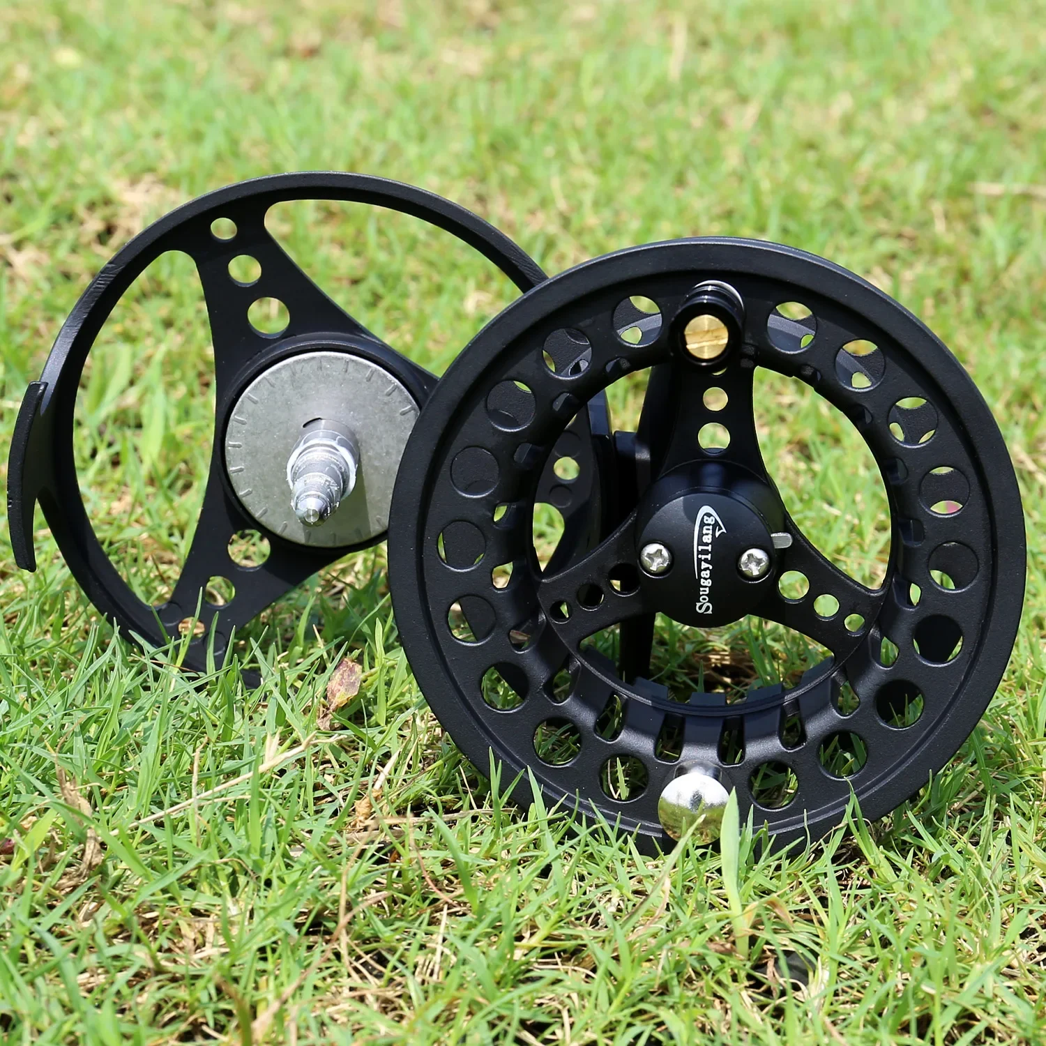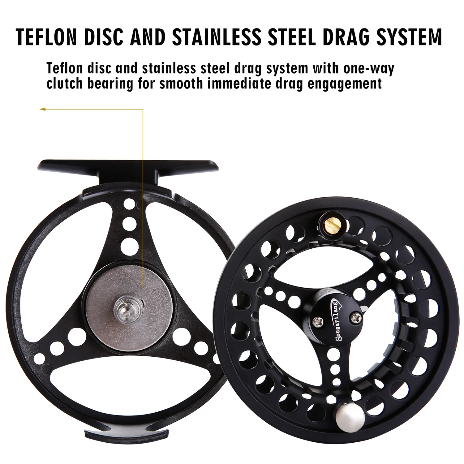 Carrete de pesca con mosca Sougayilang, cuerpo de aleación de aluminio mecanizado CNC, eje principal de acero inoxidable, perilla de arrastre antideslizante, carrete de mosca 5/6