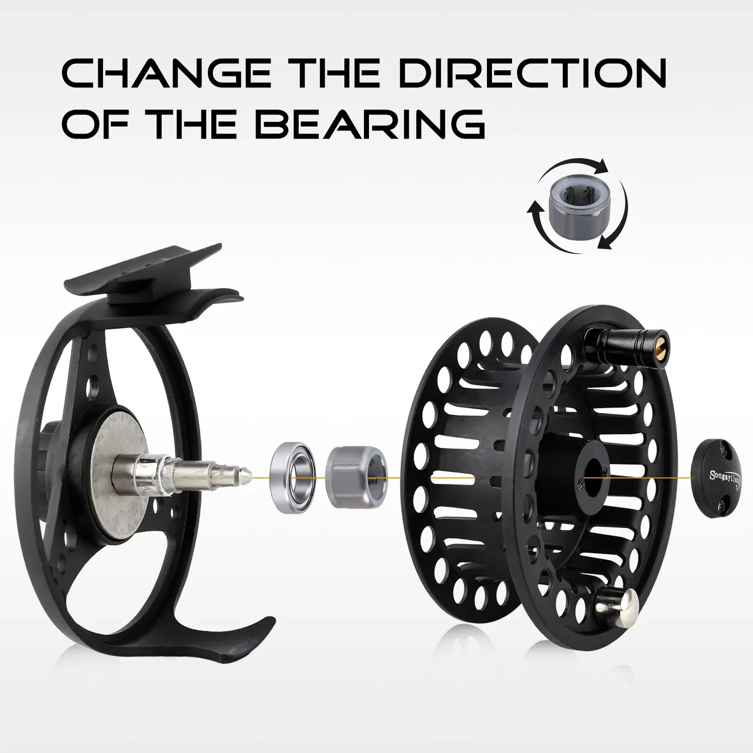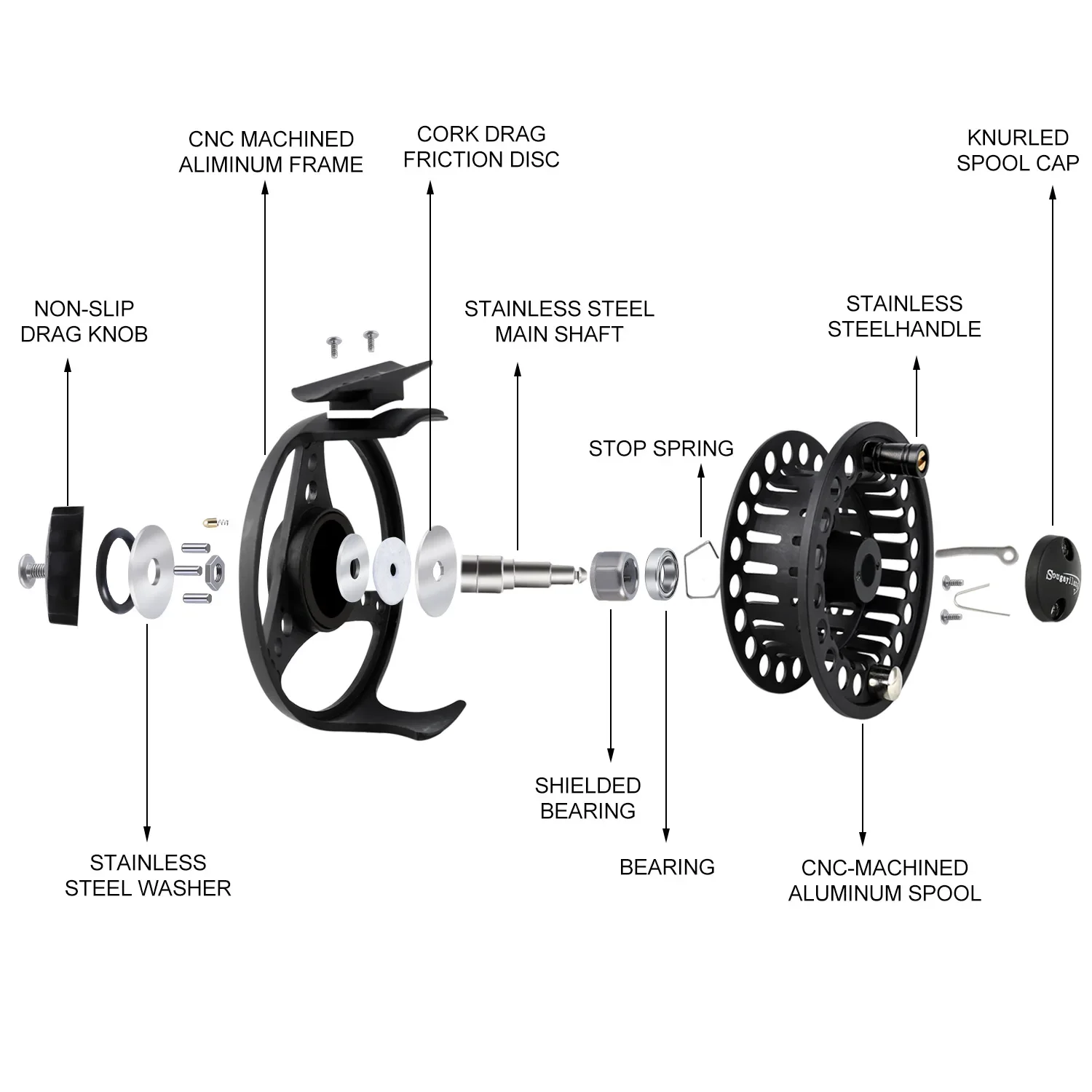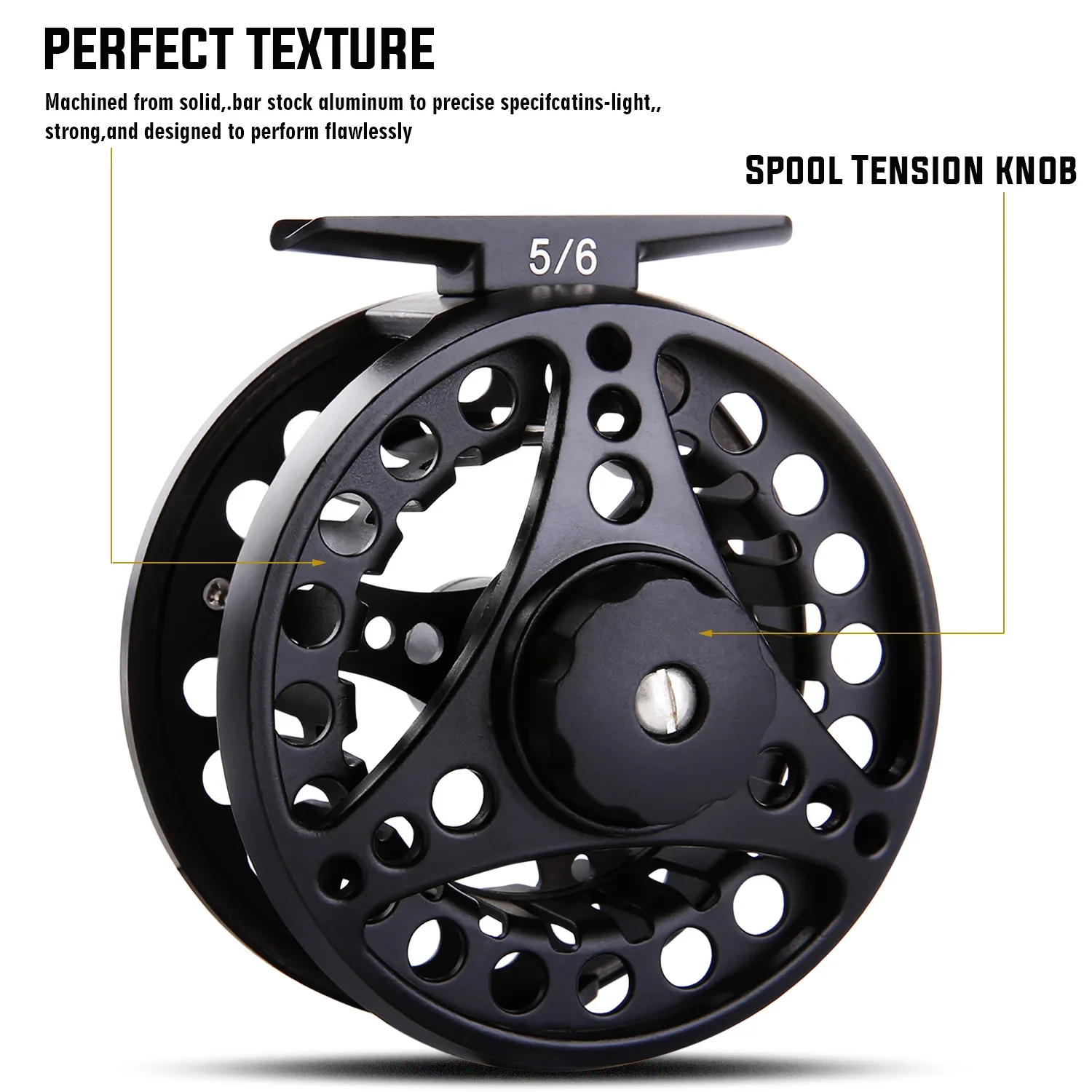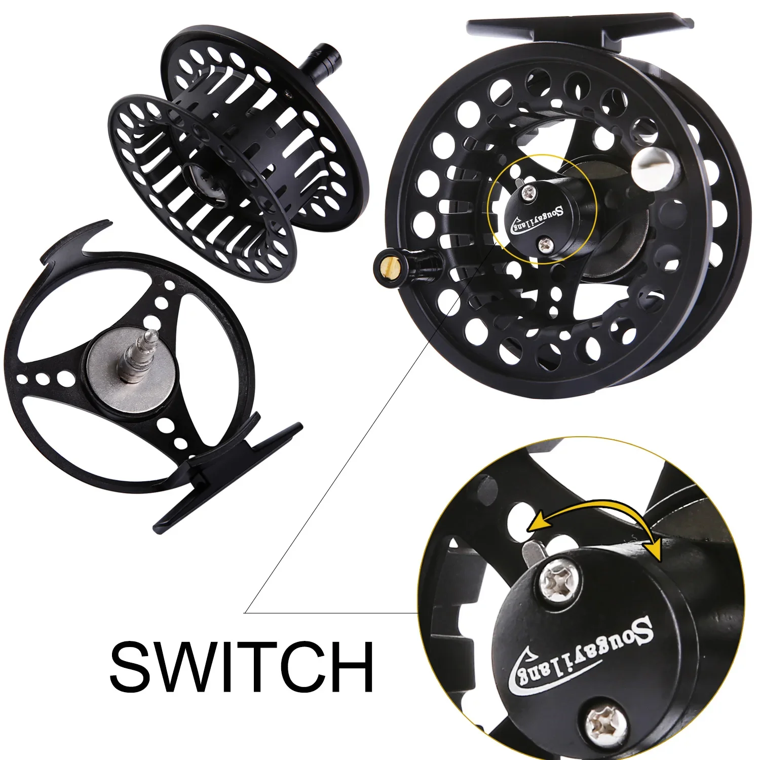 Carrete de pesca con mosca Sougayilang, cuerpo de aleación de aluminio mecanizado CNC, eje principal de acero inoxidable, perilla de arrastre antideslizante, carrete de mosca 5/6