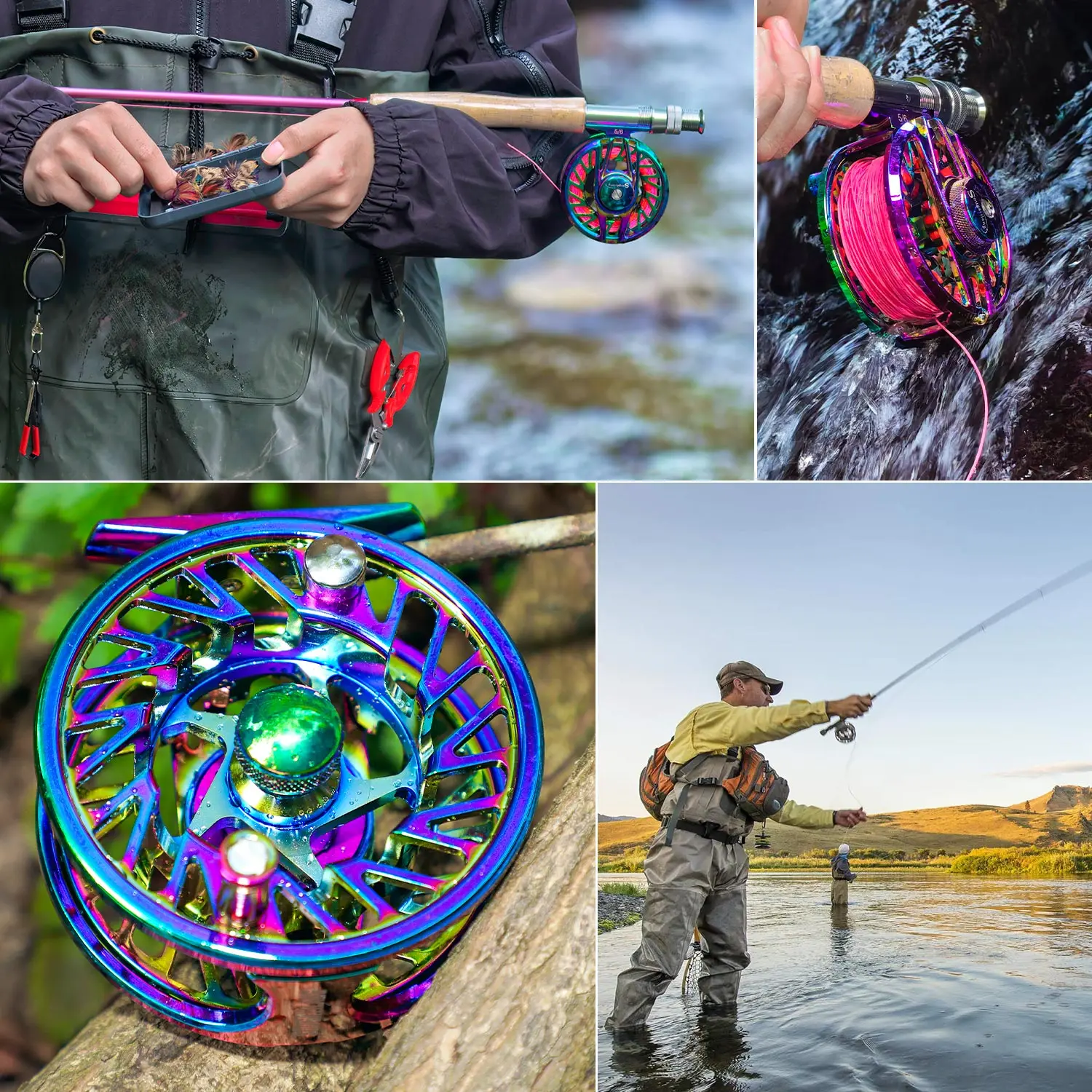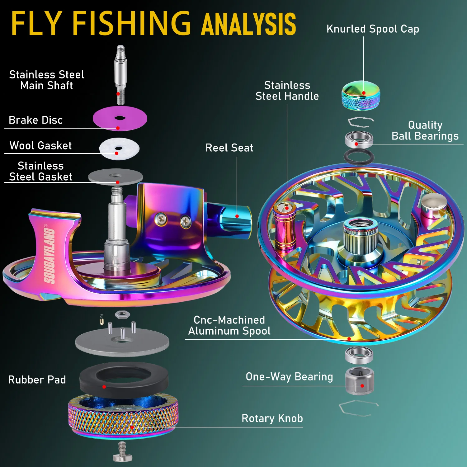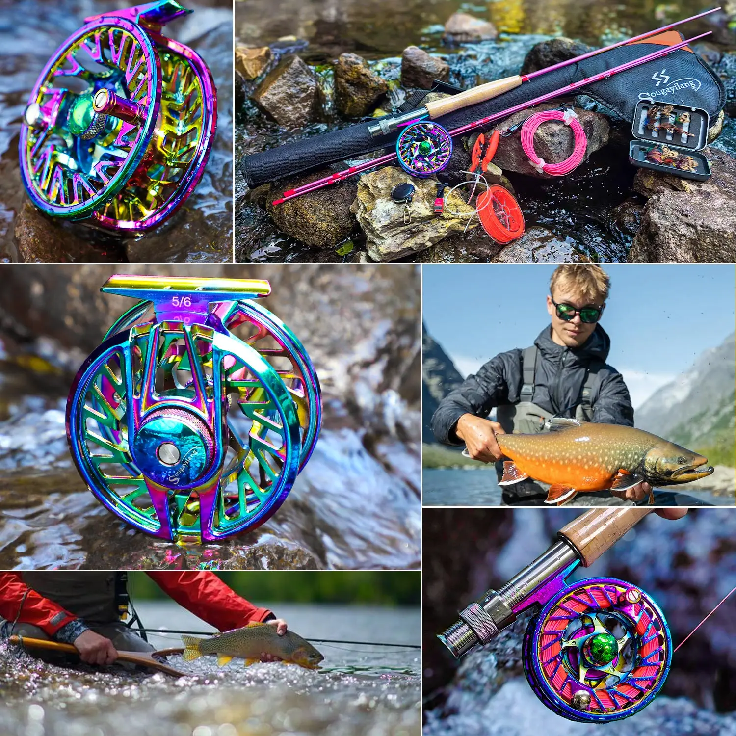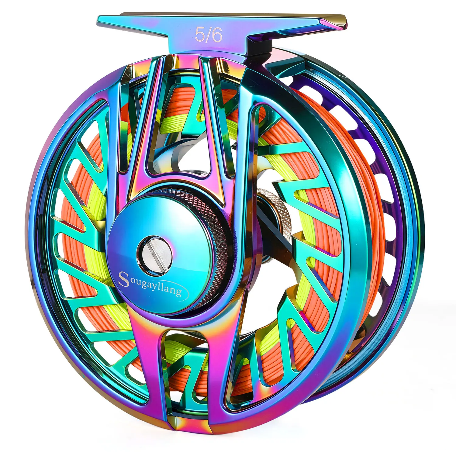 Carrete de Pesca con Mosca Sougayilang Multicolor, 2+1 Rodamientos de Bolas, Carrete de Aleación de Aluminio Fundido a Presión, Carrete de Pesca con Mosca de Gran Diámetro, Aparejos de Pesca, Pesca