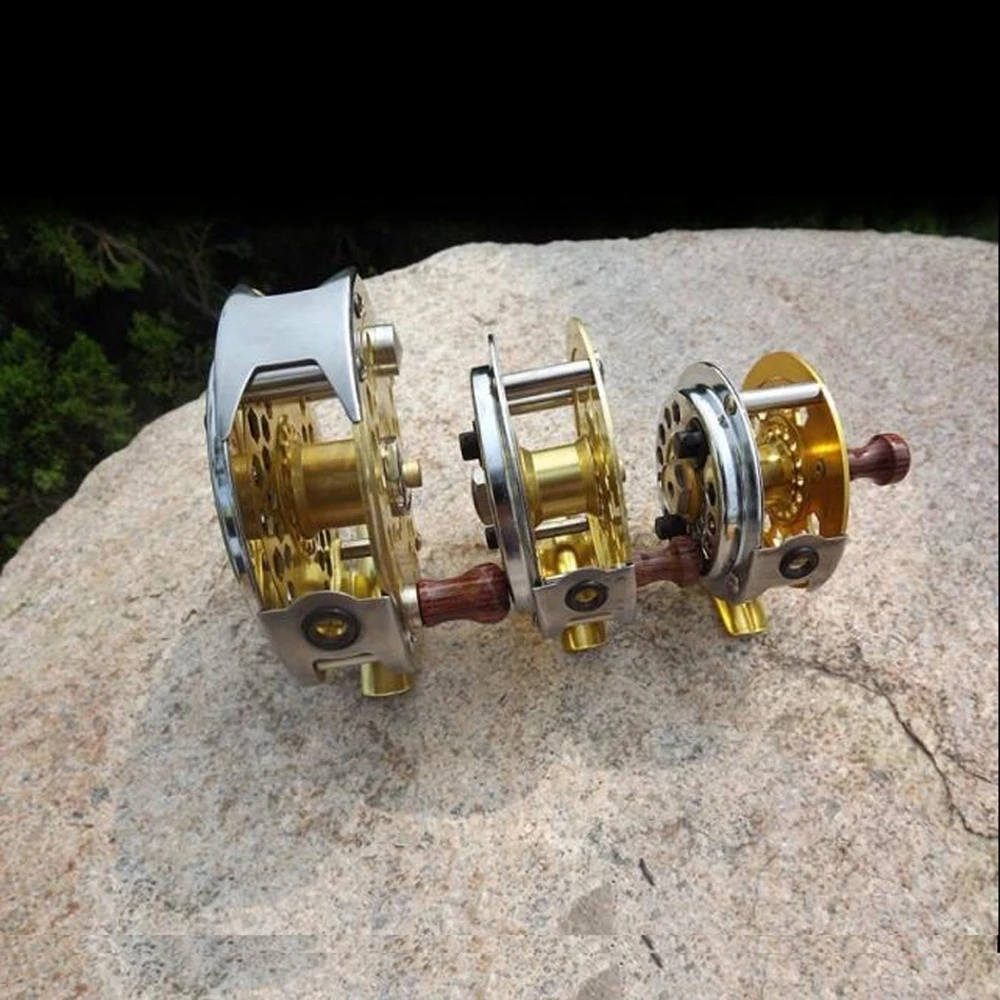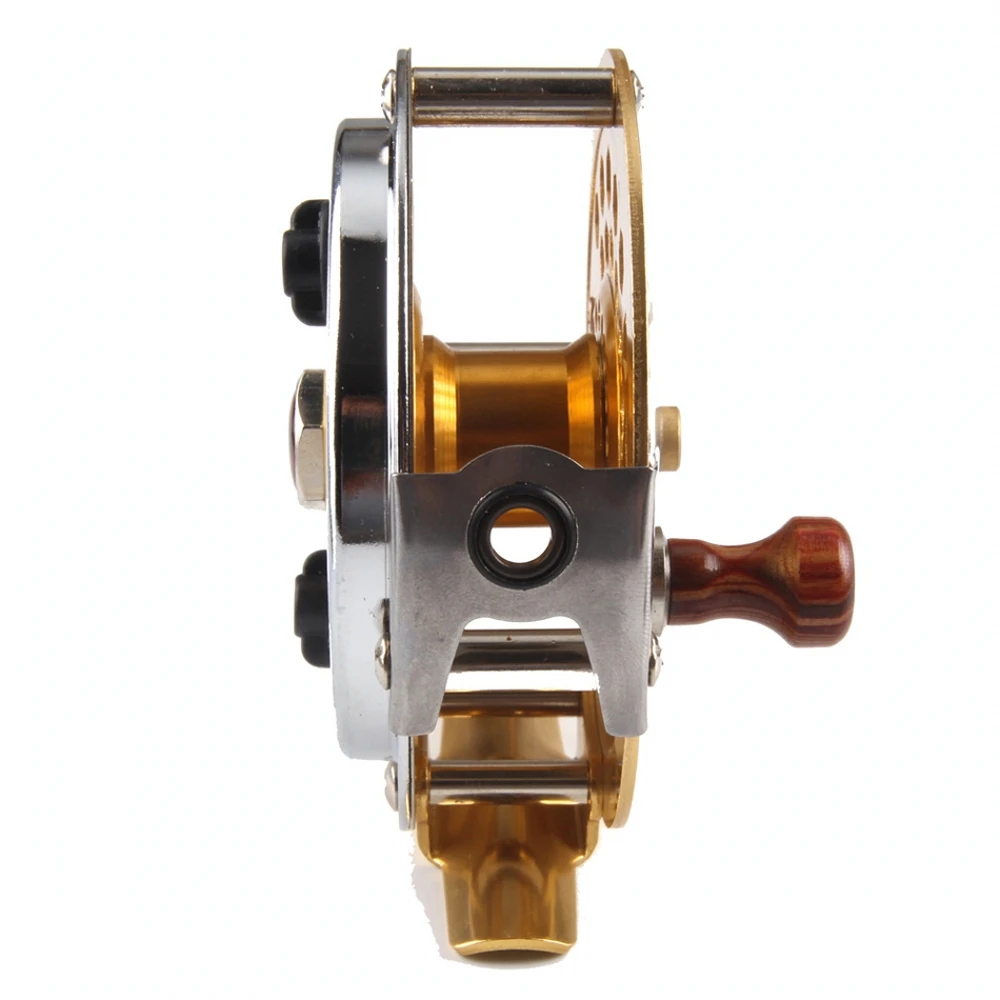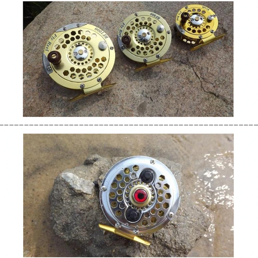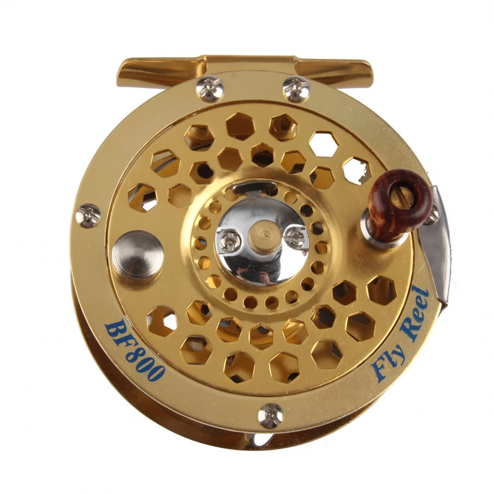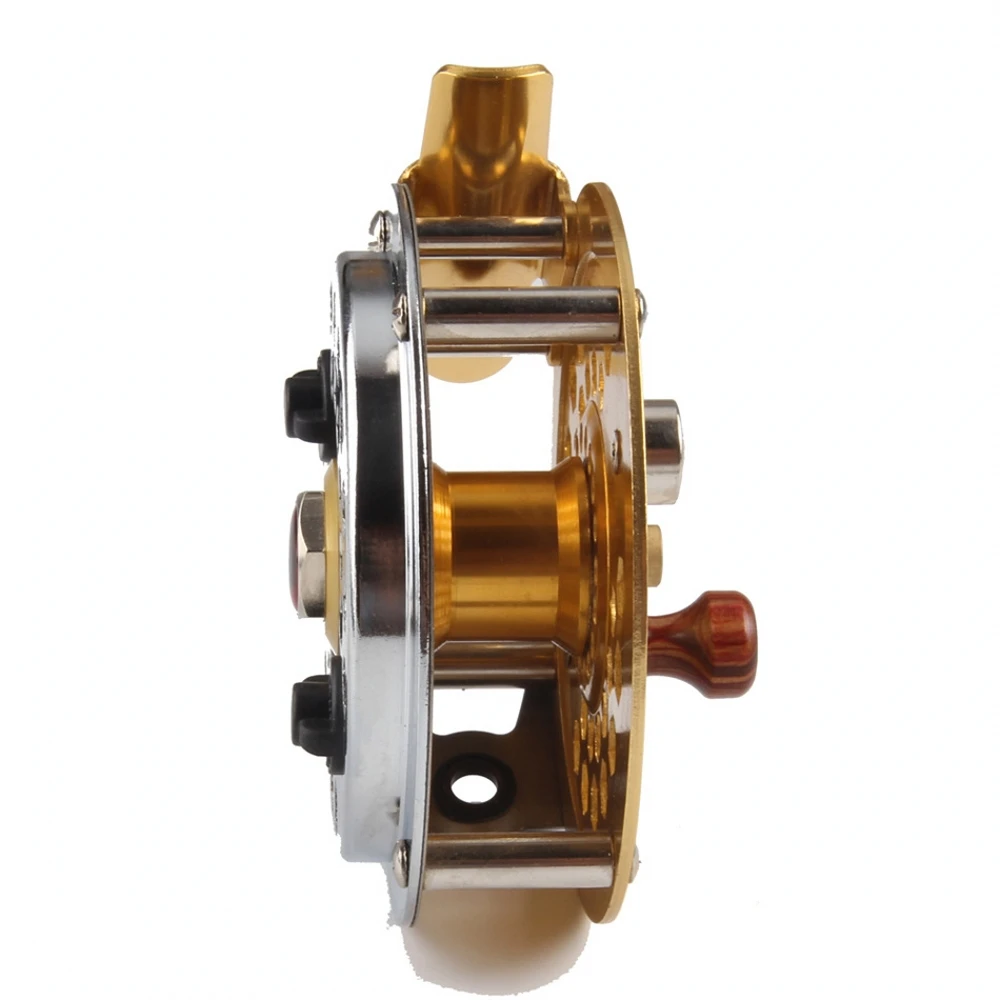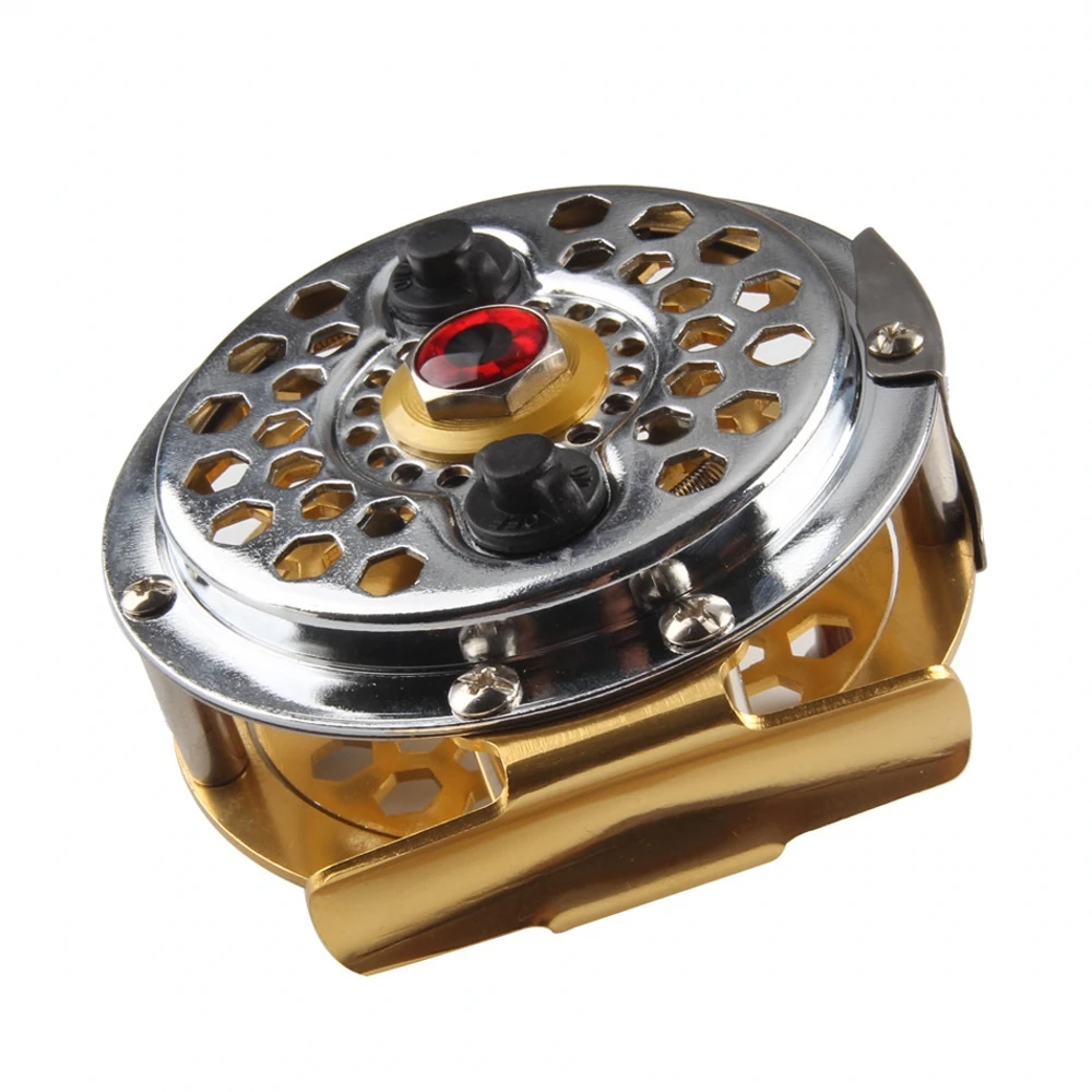 2. La rueda de pesca con mosca dorada está hecha de metal,
