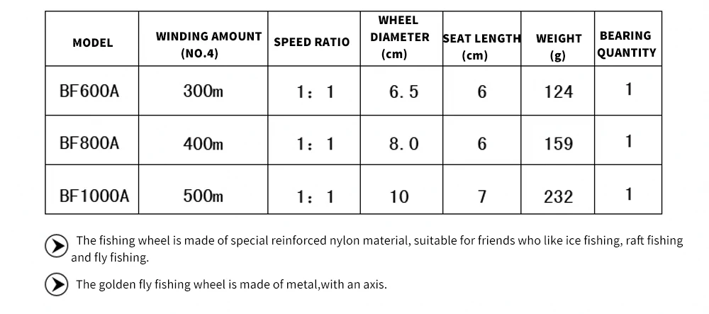 1. La rueda de pesca está hecha de material de nailon reforzado especial, adecuado para amigos que les gusta la pesca en hielo, la pesca en balsa y la pesca con mosca.