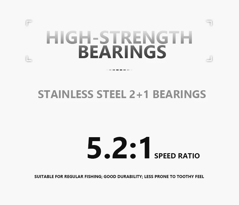 Estructura y cuerpo totalmente metálicos fabricados en aleación de cobre, combinados con balancín de acero engrosado y patas de carrete de metal para una resistencia superior y resistencia al impacto.Equipado con rodamientos de alta resistencia de acero inoxidable 2+1 y una relación de transmisión de 5,2:1, es ideal para la pesca regular con excelente durabilidad y sin juego de engranajes incluso después de un uso prolongado.