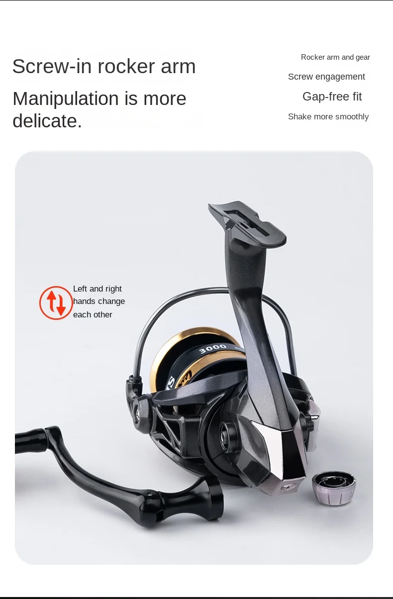 Este carrete de pesca es un carrete duradero y de buen rendimiento diseñado para la pesca en agua salada y dulce. Cuenta con un carrete de metal y un mango intercambiable resistente que se puede ajustar para uso diestro o zurdo, ofreciendo flexibilidad y comodidad.