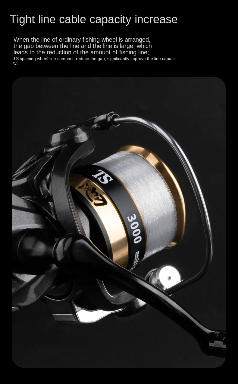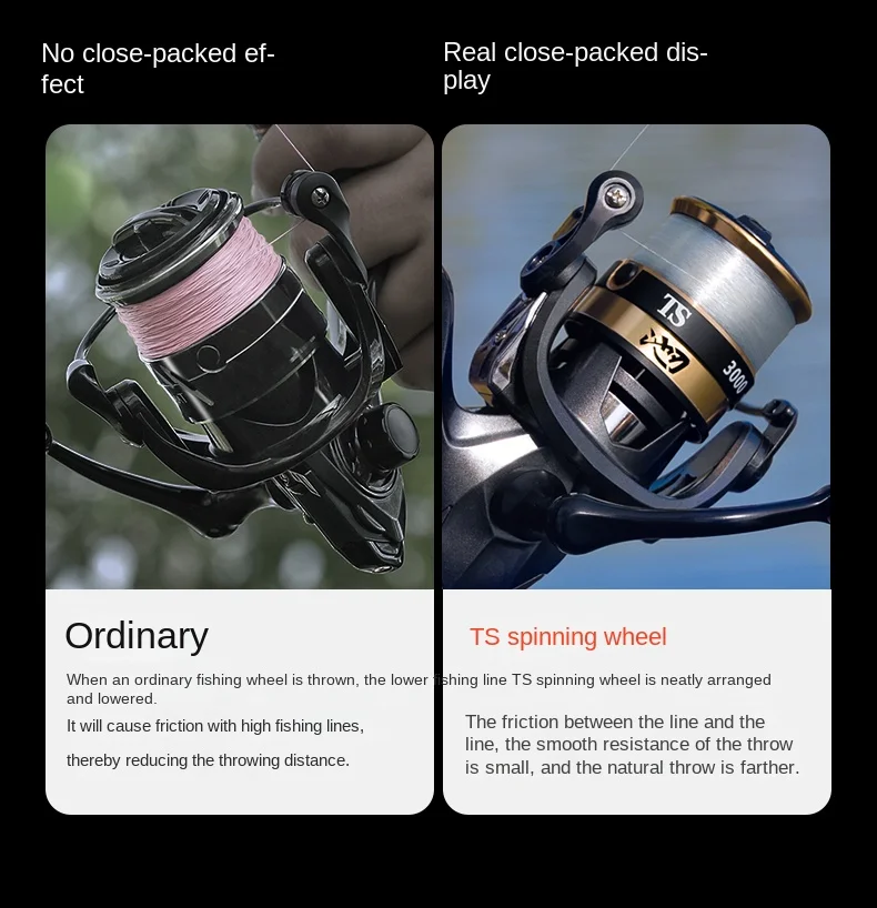 Con el diseño de bobinado apretado, la línea está perfectamente dispuesta en el carrete, lo que luce muy profesional.