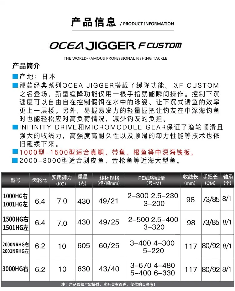 Carrete de pesca OCEA JIGGER F CUSTOM 1501hg 2001NRHG 2001NRXG carrete de pesca hecho en Japón carrete de pesca de jigging de barco de océano profundo