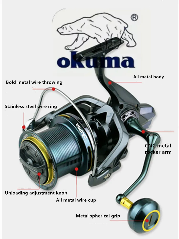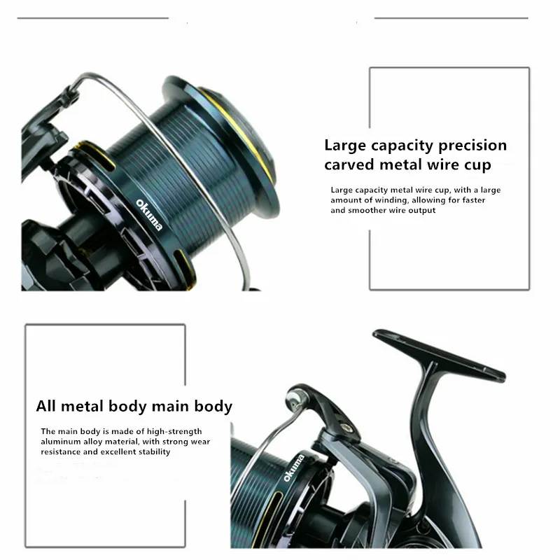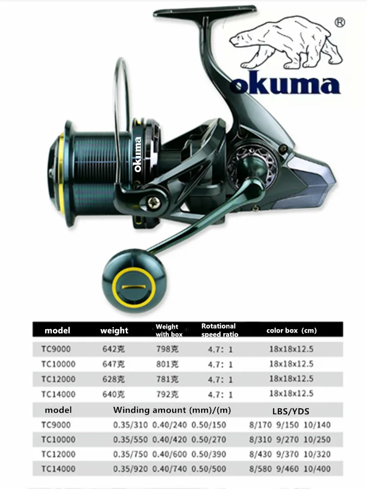 Carrete de pesca OKUMA 9000-14000 rueda de fundición de larga distancia de metal caña guía rueda de pesca 4,7: 130KG pesca con freno