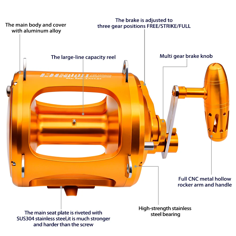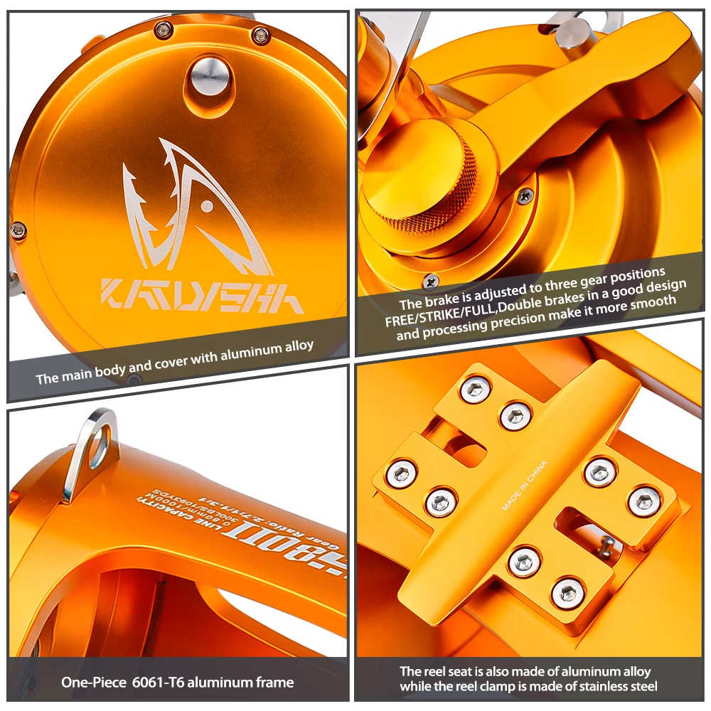 La mejor pieza de equipo y la opción número uno para pescadores y pescadores ávidos por igual, la serie Proberos DG30 de carretes de pesca cuenta con un rendimiento mejorado, gran versatilidad, así como una fiabilidad inigualable para ayudarte a conseguir la captura de tu vida. Con extensas pruebas e I + D, así como más de 12 años de experiencia en la pesca, el equipo de Proberos pudo desarrollar carretes especiales mejorados específicamente para el jigging. Equipado con relaciones de transmisión optimizadas para el par y la velocidad combinados con un arrastre suave y fuerte, Proberos te da la ventaja de traer fácilmente tu próximo pez monstruo.Características:Diseño de ajuste de arrastre de manipulación con una manoCNC de precisión mecanizado a partir de un bloque sólido de aluminio de grado aeronáuticoTecnología de arrastre superior para un arrastre excepcionalmente suave, fuerte y confiable8 rodamientos de bolas de acero inoxidable, 1 rodamiento antirretroceso de acero inoxidable y 2 engranajes de acoplamiento de diseñoRelación de engranaje de 3,6: 1/1.6:1 para rotación y par de engranaje optimizadosExcelente carrete libreDiseño único DG antinversión y doble acoplamiento para minimizar la presión en el engranaje principal y el rodamiento. Mayor longevidad.Tratamiento de superficie anodizada resistente a la intemperie, al óxido y a los arañazosEquipado con mango de potencia y barra en T ergonómica de aluminio CNCInstrucciones de lavado: lavar el exterior con agua fresca y limpiar después de su usoModelo: DG30/DG50/DG80 (mano derecha)Color: doradoRelación de engranajes: 3,6: 1/1.6:1-3,1: 1/1.3:1-2,5: 1/1.6:1Tipo de carrete: convencional/arrastre de palancaDiámetro del carrete: 75mm/95mm/110mmAncho del carrete: 50mm/75mm/95mmPeso bruto: 1650g/1978g/3026GCapacidad de Línea: 150lb/0,7mm/845M - 200lb/0,8mm/920M - 300lb/0,8mm/100MArrastre efectivo: 18kg/26kg - 28kg/38kg - 32Kg/45kgEl paquete incluye: carrete, mango eléctrico, barra en T, herramienta, manual y saco de carrete Proberos.Fabricante: ProberosNotas: Utilizamos el envío exprés como EMS UPS DHL FEDEX para este artículo, entonces tal vez su aduana cobrará impuestos. El comprador tiene la obligación de ayudar al despacho de aduanas.Gracias por su cooperación.
