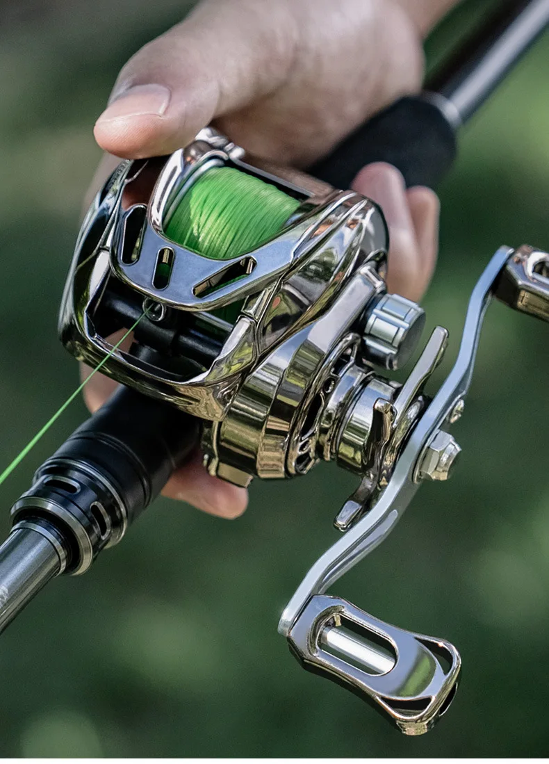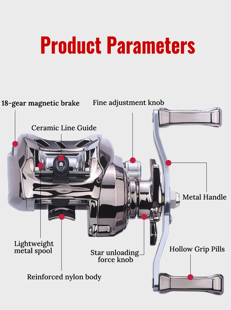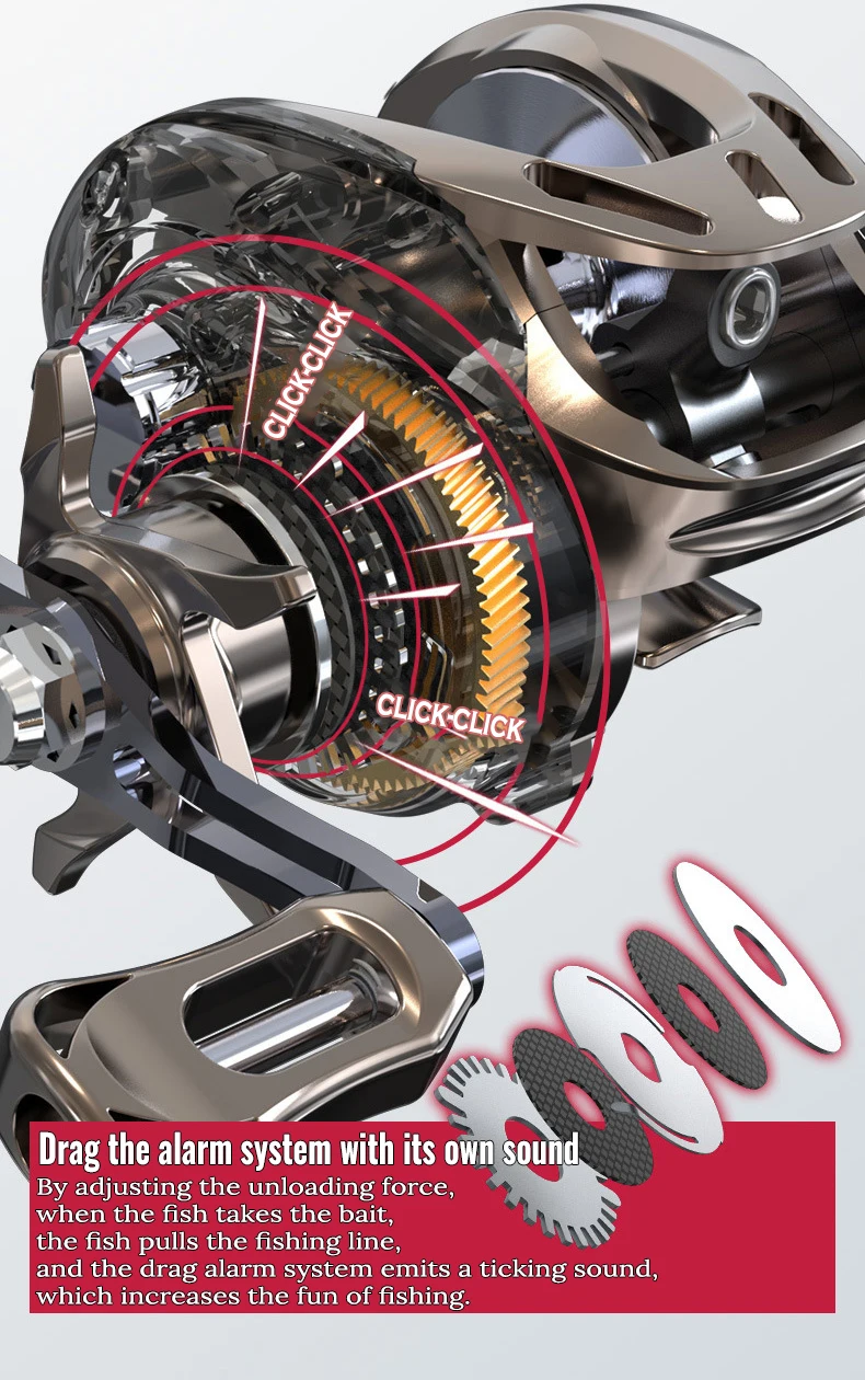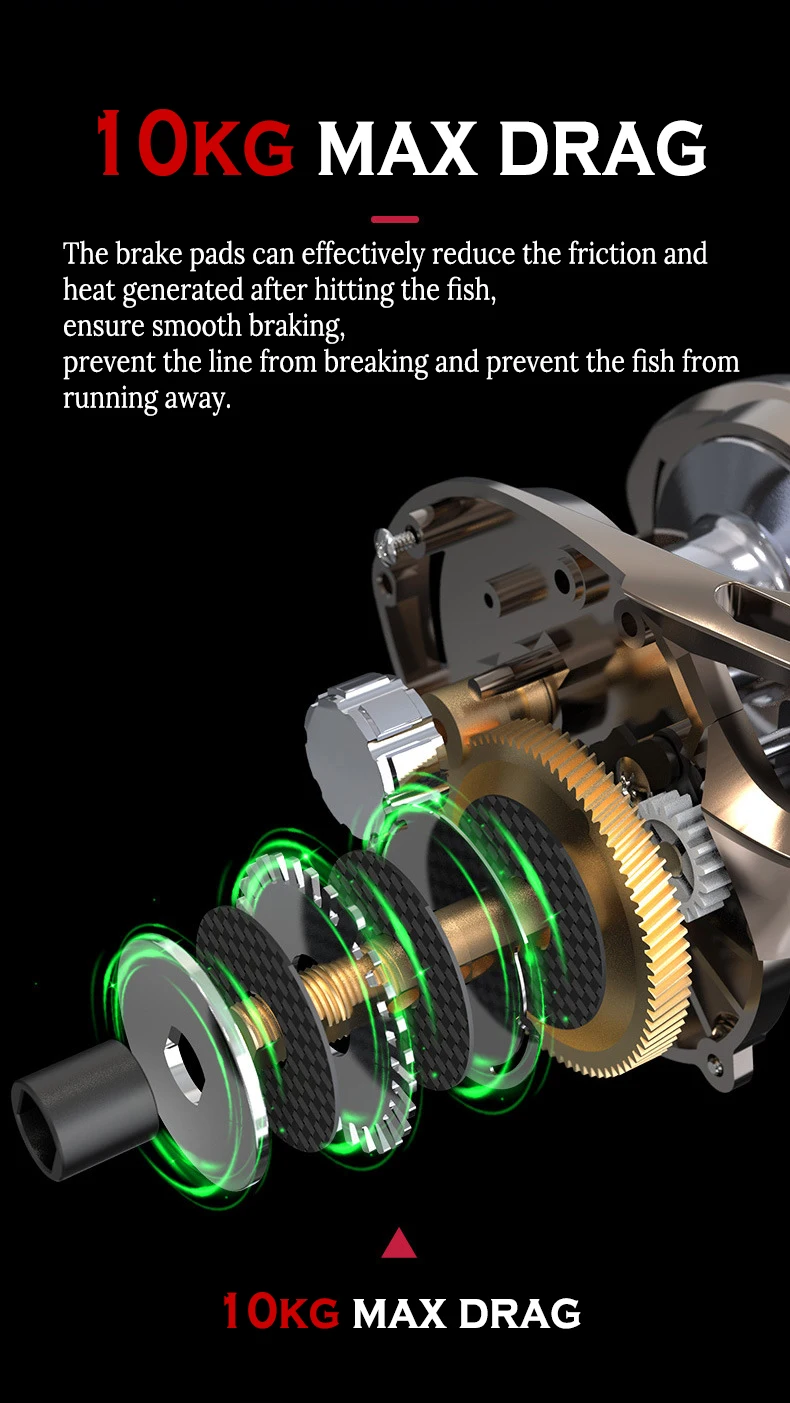 El disco de ajuste del freno externo se puede ajustar con precisión de acuerdo con el peso del cebo y las condiciones de pesca para garantizar que el carrete gire de manera eficiente y uniforme.