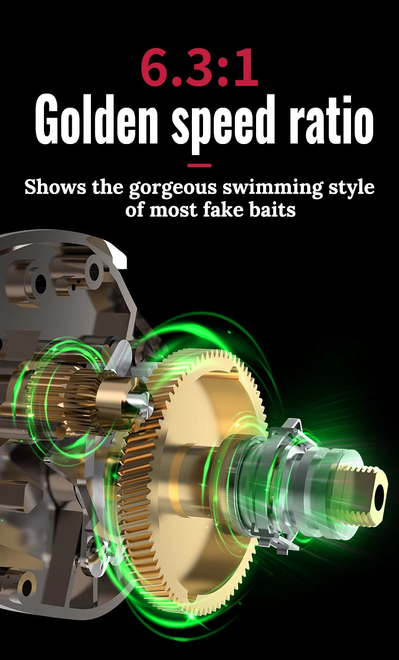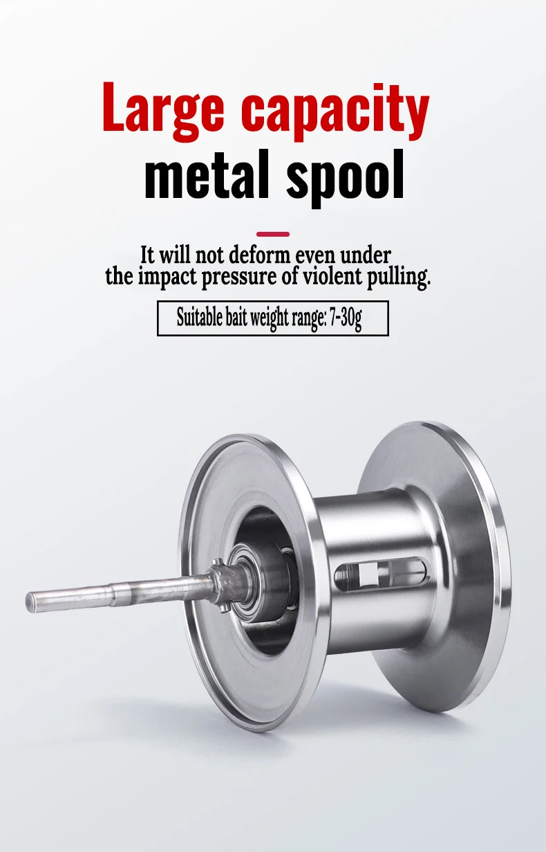 4.6.3:1 relación de engranaje de alta velocidad, peso del señuelo 7-30g.