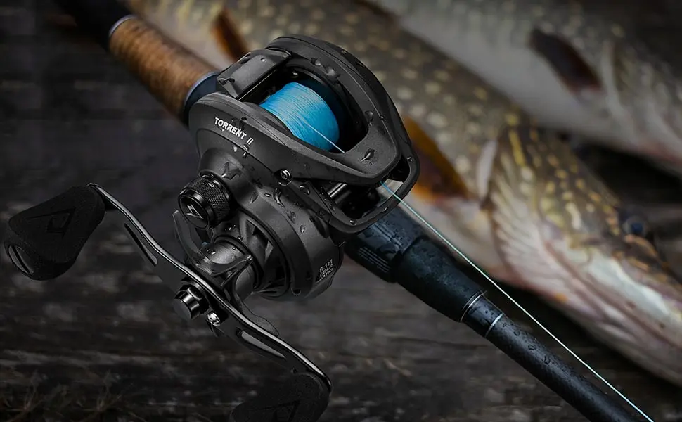 4.[Meccanica lista para torneos] El Torrent II incorpora 7 rodamientos de cartucho sellados resistentes a la corrosión con un sistema de oscilación de carrete soportado de doble rodamiento, lo que minimiza la pérdida de energía cinética.