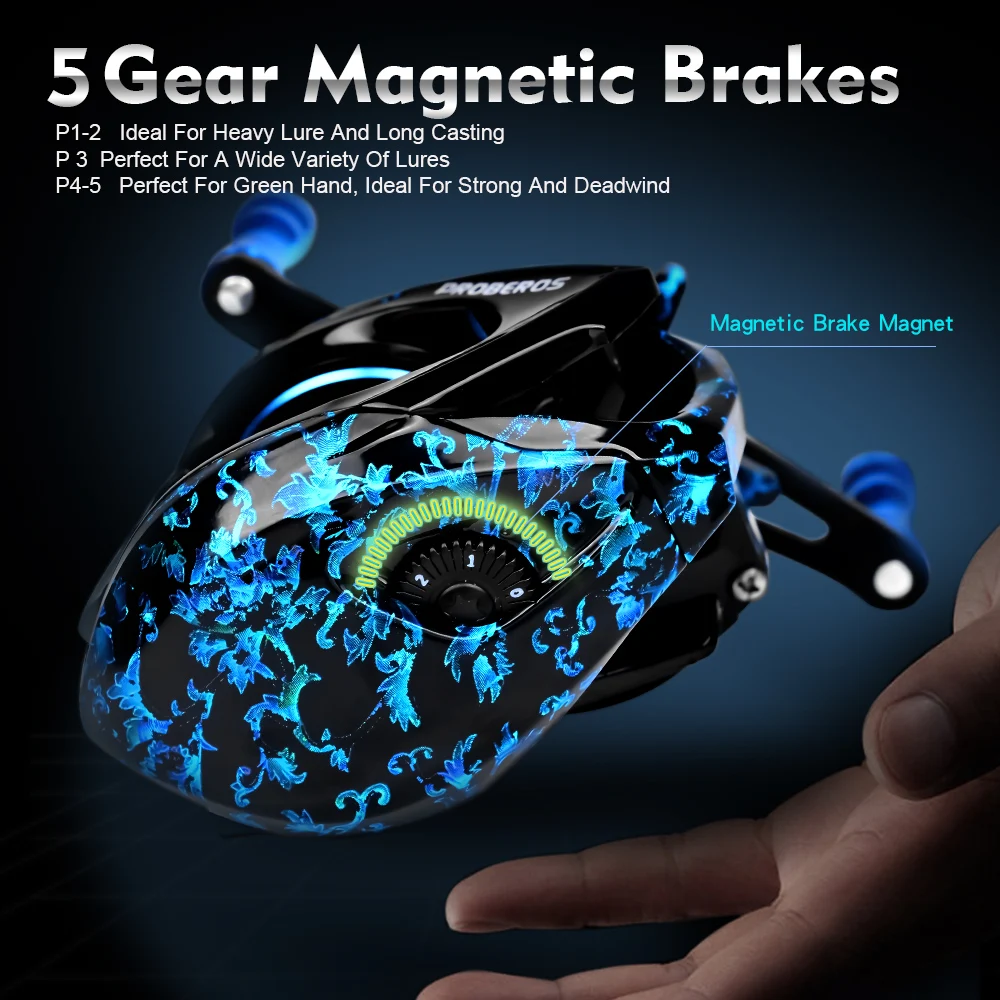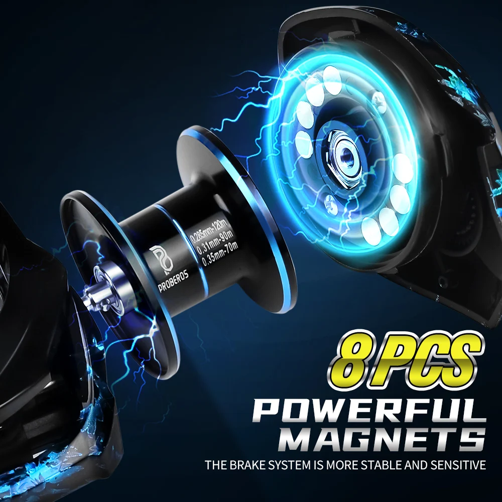 Carrete de Pesca PROBEROS Baitcast 7,2: 1, relación de engranaje, carrete de Metal de 8kg de arrastre máximo, rueda de fundición de cebo, sistema de freno magnético