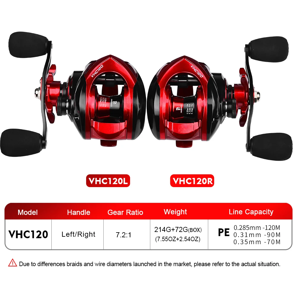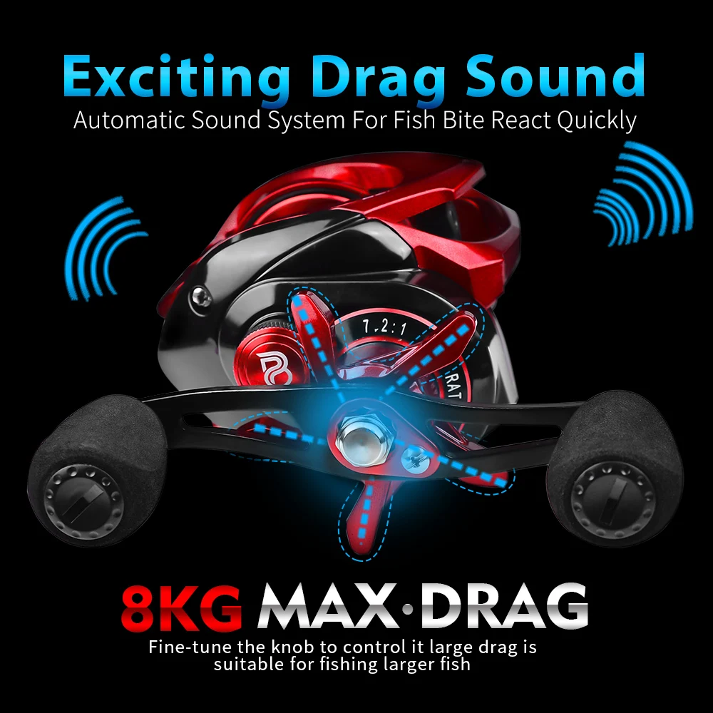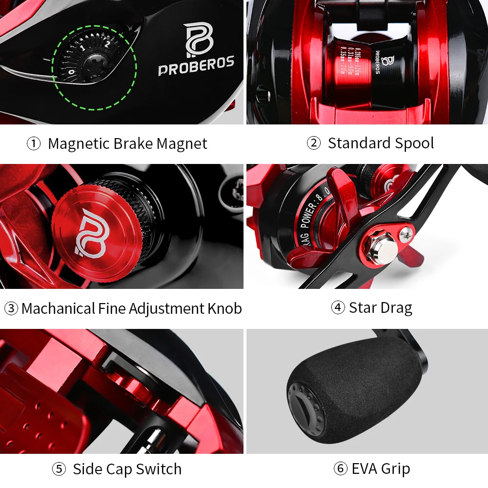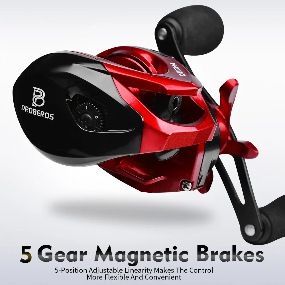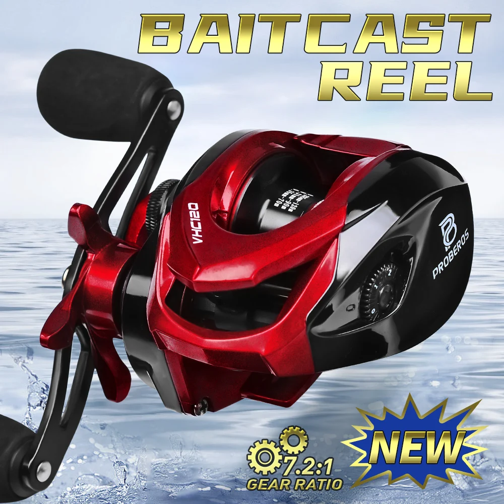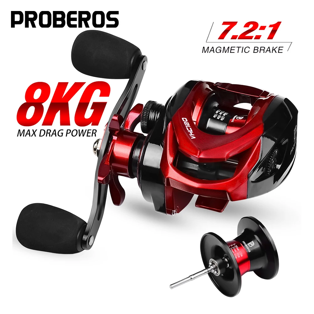 Carrete de pesca PROBEROS Baitcast con relación de engranaje 7,2: 1, carrete de fundición de cebo con carrete de metal ultraligero
