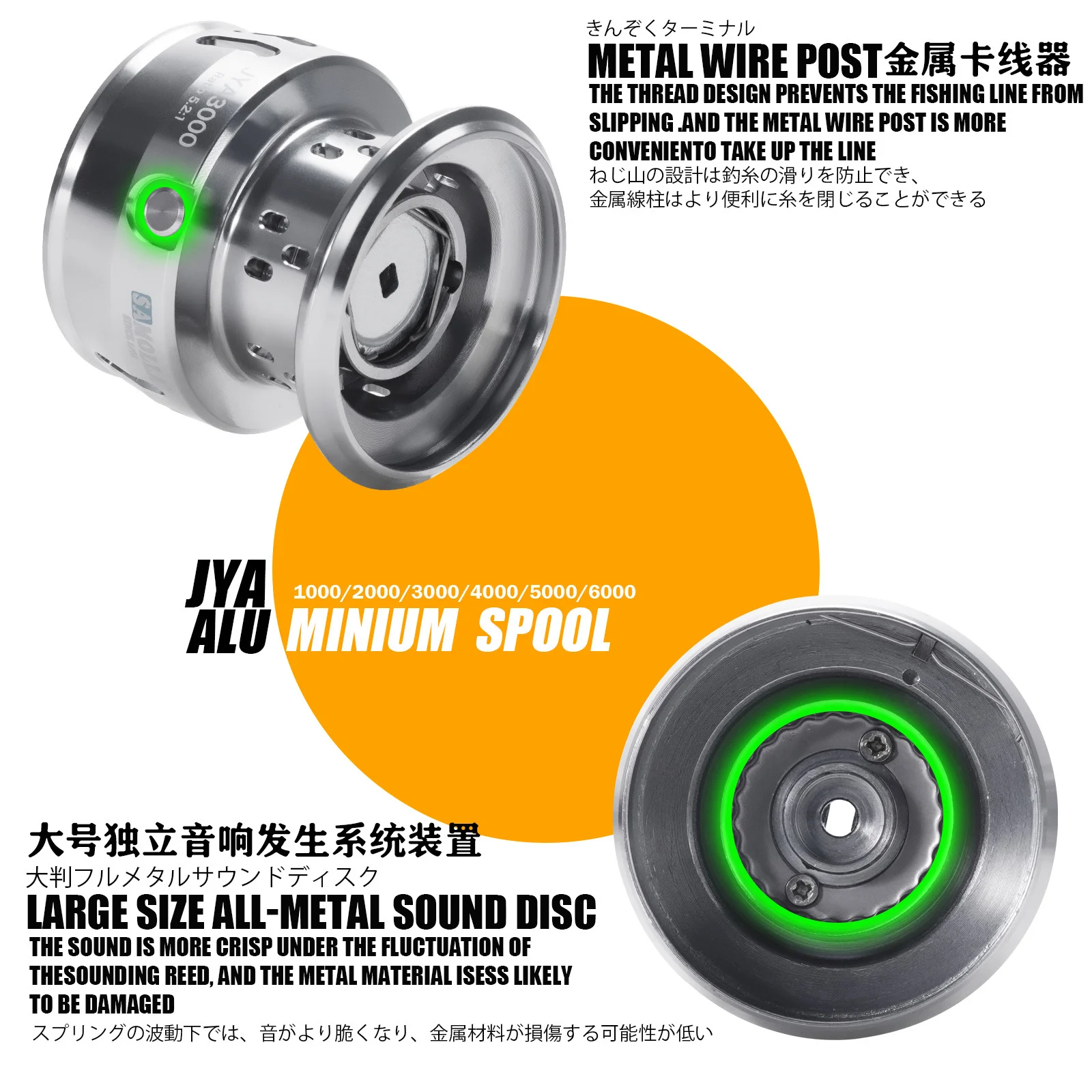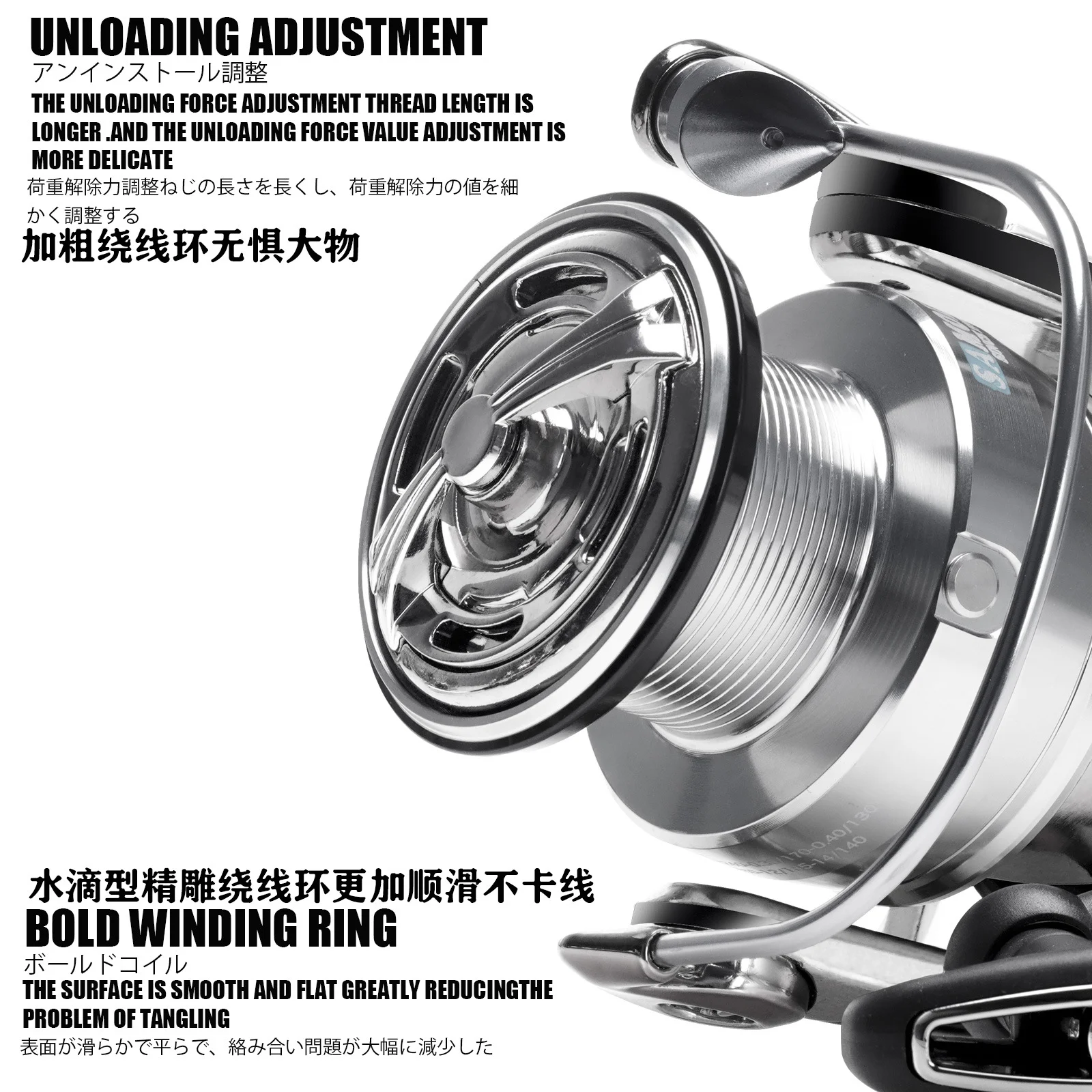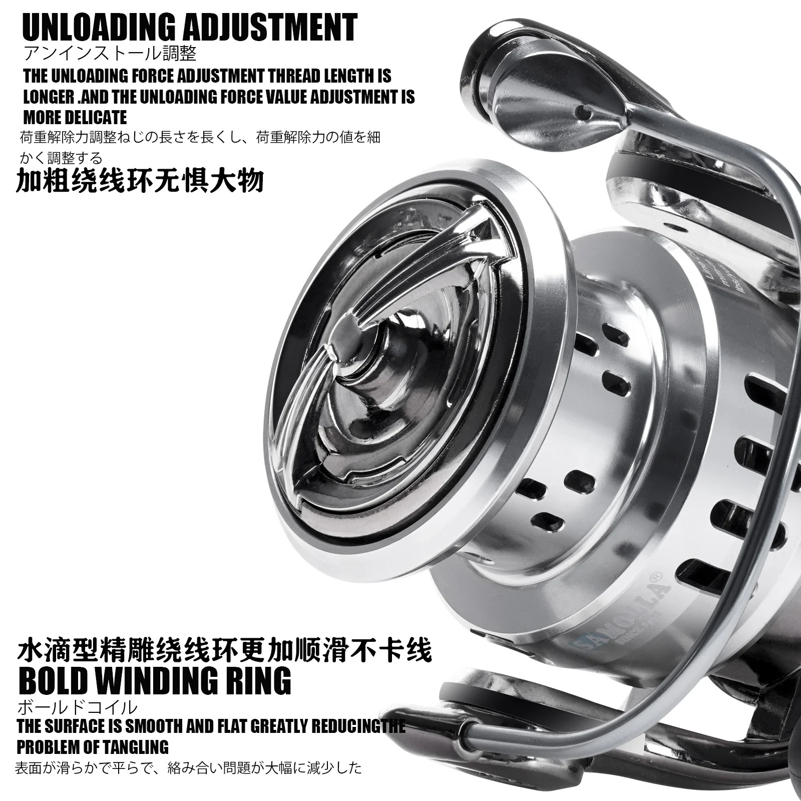 1: El cuerpo de metal hace que el carrete tenga un rendimiento perfecto mientras se pesca.