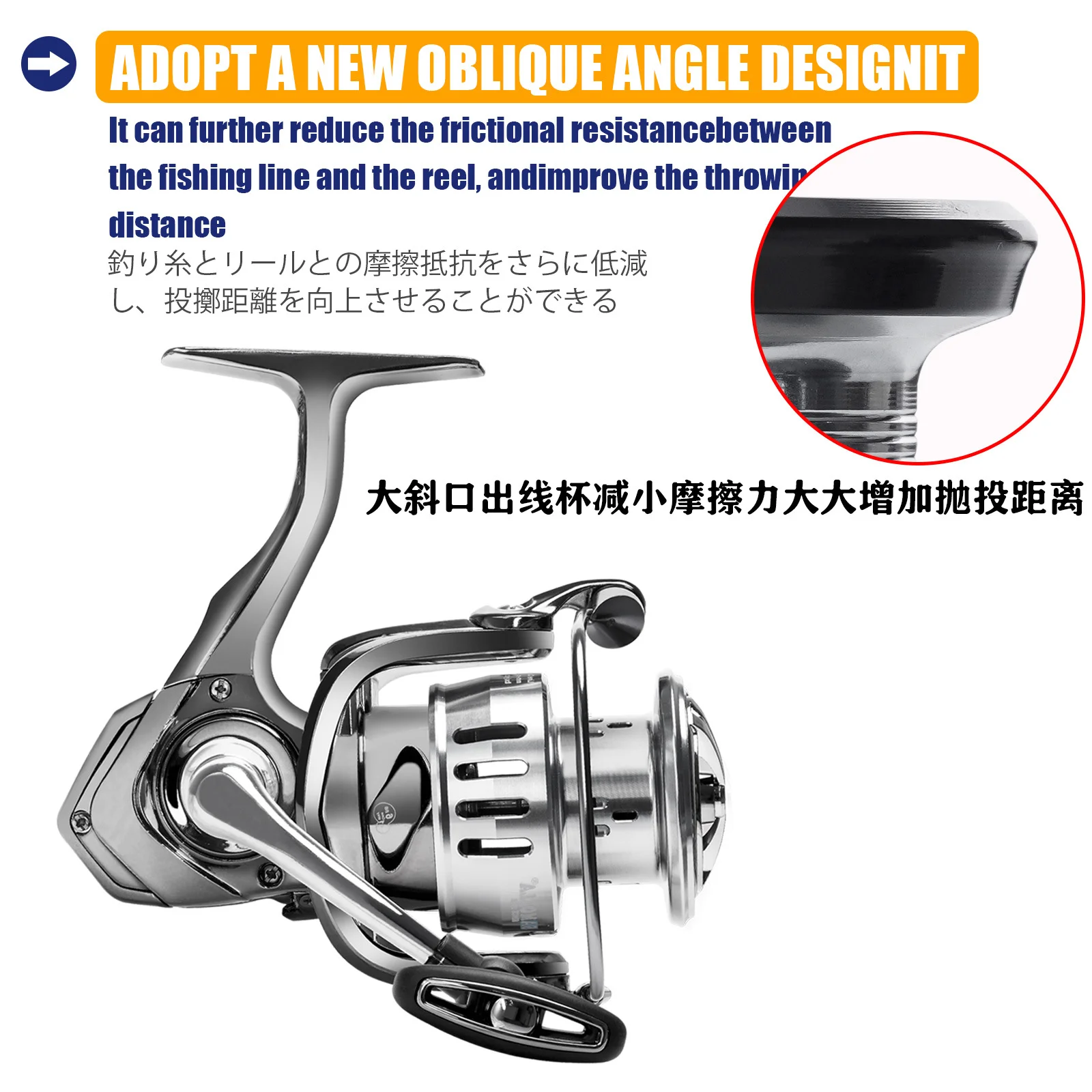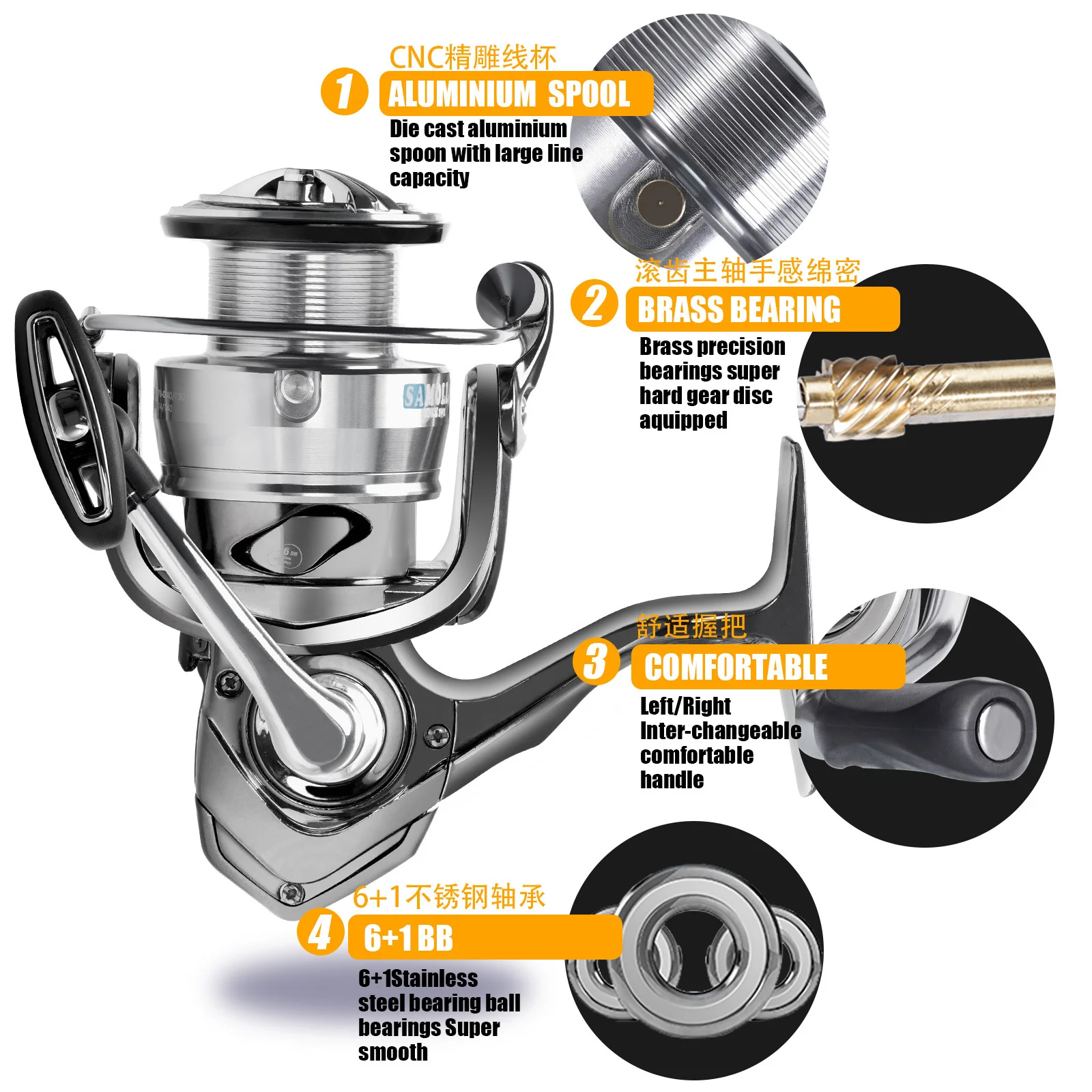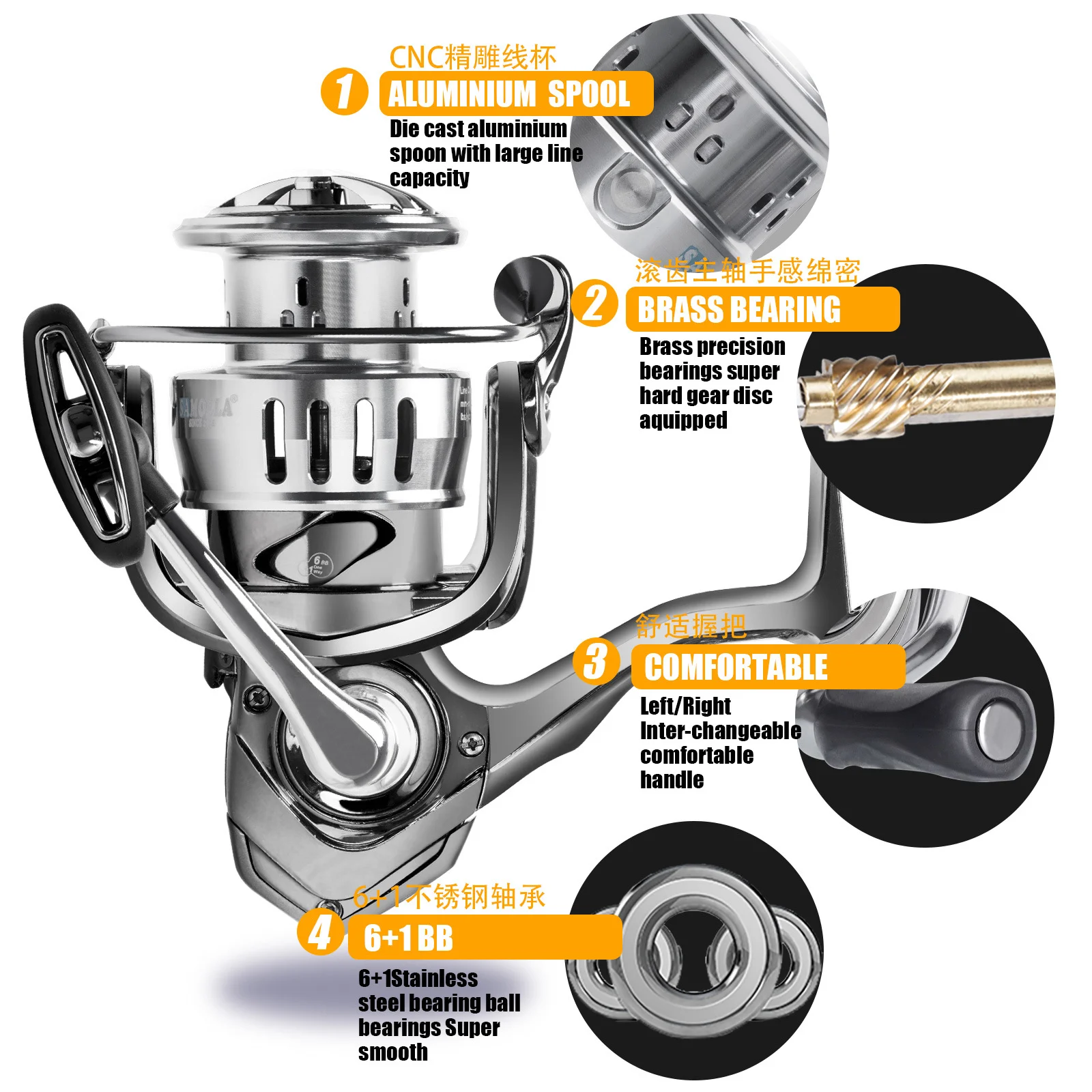 1: El cuerpo de metal hace que el carrete tenga un rendimiento perfecto mientras se pesca.