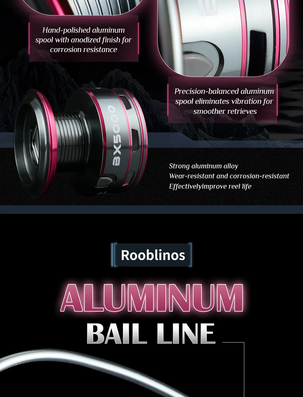 Carrete de pesca Rooblinos BX 1000-7000 carrete giratorio de acero inoxidable carrete de pesca con rodamiento 8KG máximo para pesca en el mar pesca de carpa