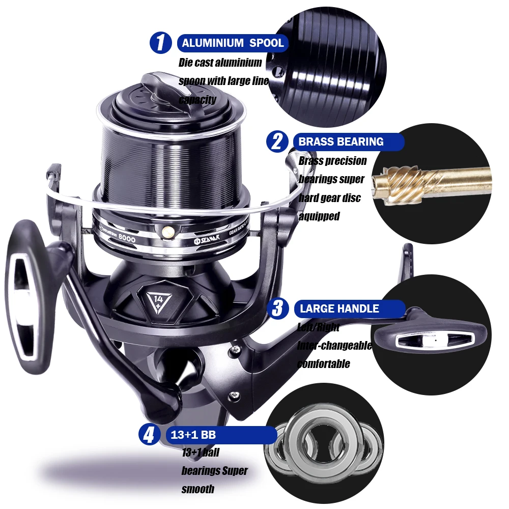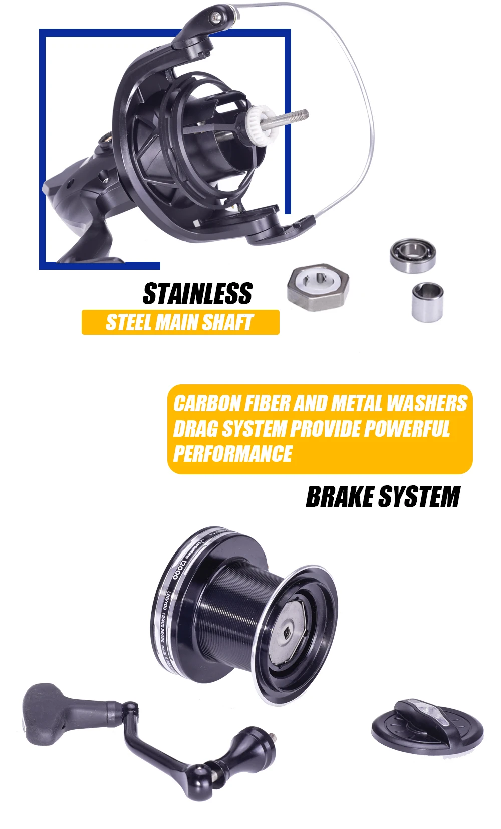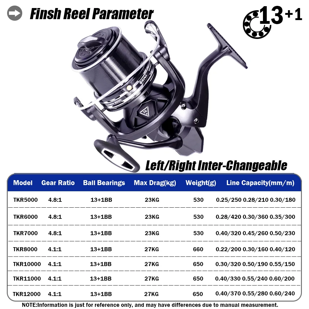 Carrete De Pesca Rueda Distancia Carpa Carrete Spinning Barco Máx Arrastre Lento 27kg 13 + 1BB Carretilla De Pesca Accesorios Mar Peche En Mer
