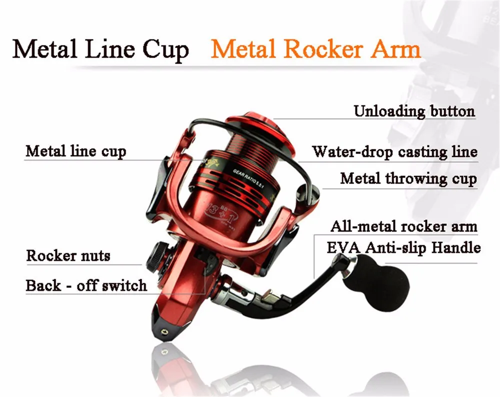 Carrete de pesca rueda giratoria 13 + 1 BB 1000 - 7000 serie 5,5: 1 4,7:1 verde fresco lujo Navidad rojo EVA mango intercambiable