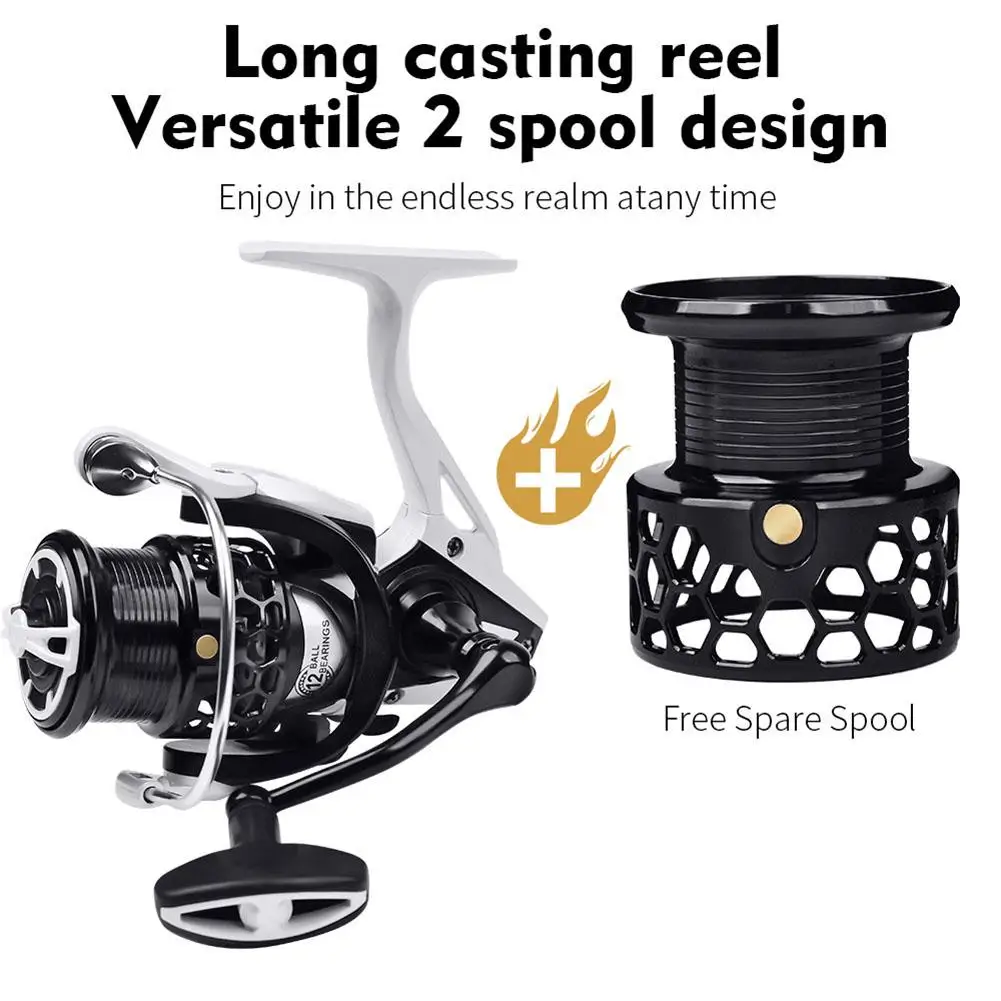 Carrete de pesca con señuelo de doble línea 5,5: 1 Ratio de engranaje 7kg máximo arrastre 7 + 1bb cojinete aparejos de pesca de fundición larga