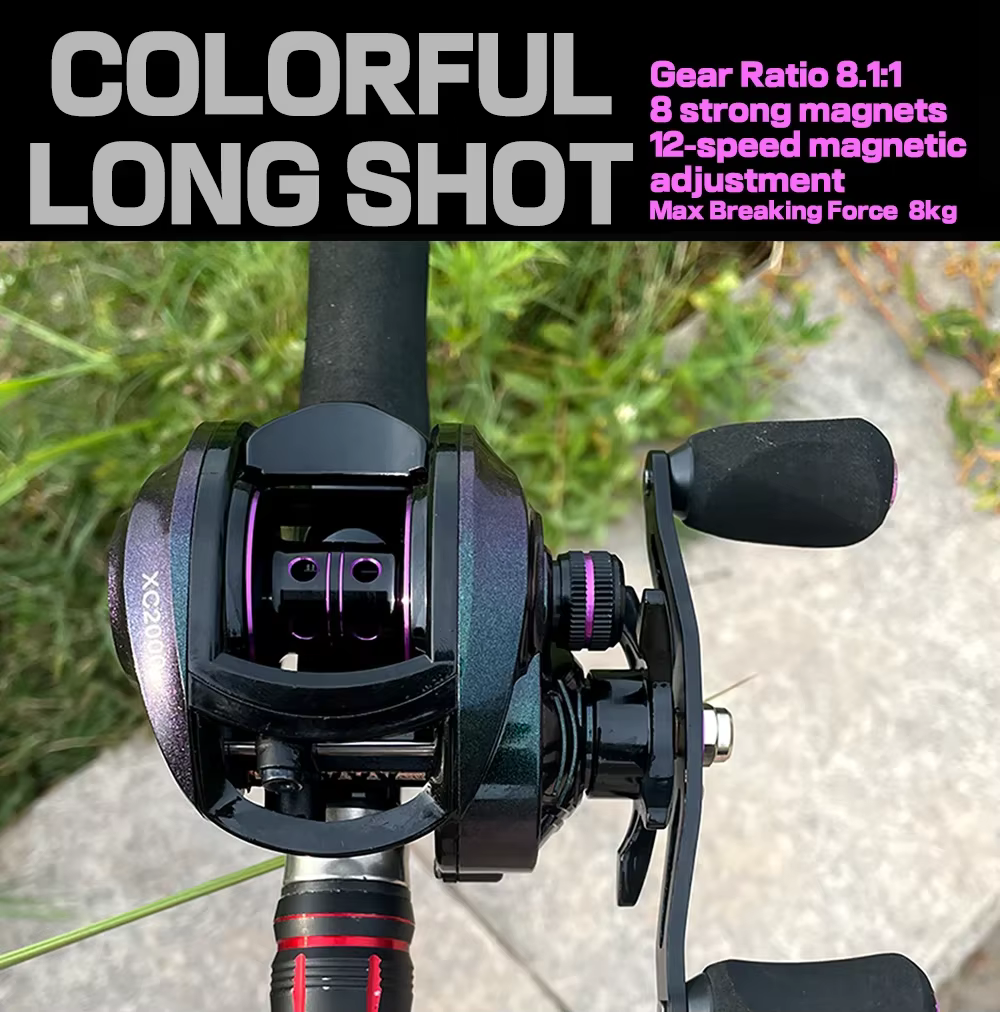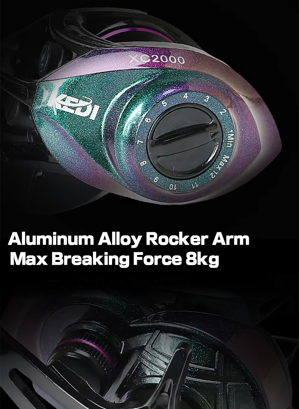 Arrastre máximo: 8 KGCapacidad de línea (mm/M): 0,28/120 0,30/110CARACTERÍSTICAS1.Carrete de metal CNC, hilo estable y no frito.2.Potencia de arrastre máxima de 8 KG, adecuada para pescar peces grandes.3.Freno magnético fuerte, también adecuado para la pesca en balsa.4.Línea no frita para pesca de lanzamiento largo.