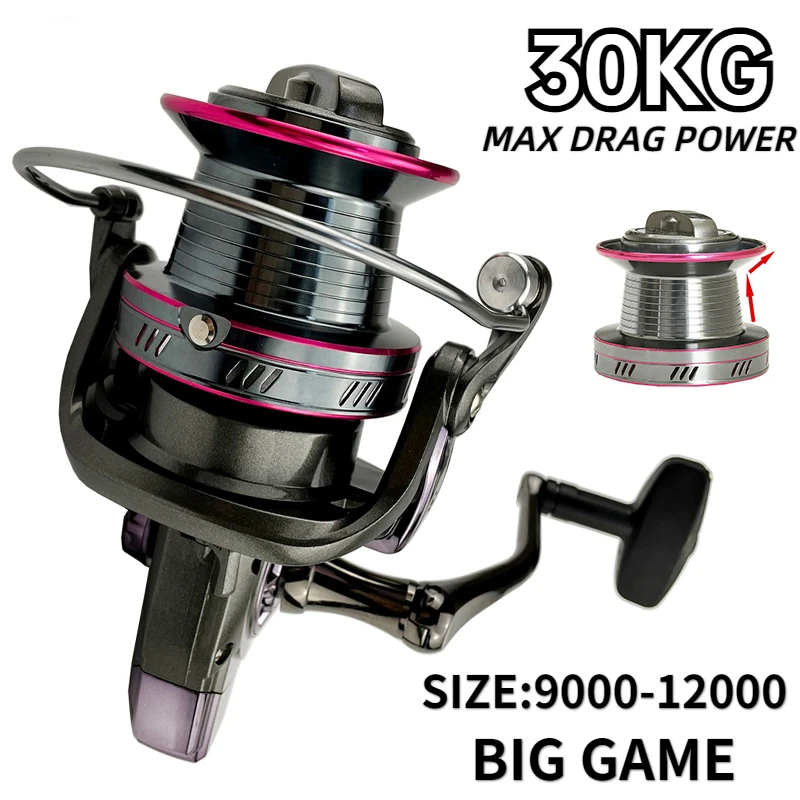 Carrete de pesca serie 9000/10000/12000 de alta resistencia, arrastre máximo de 20-30KG, copa de línea profunda de Metal súper fuerte, relación de engranaje 4,0: 1