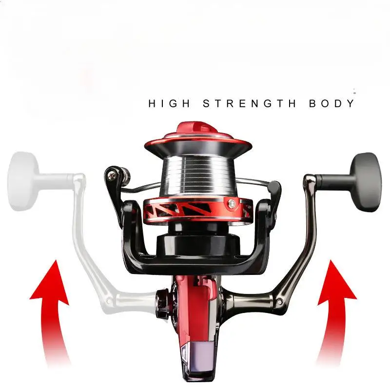 CARACTERÍSTICAS1.Súper fuerza de arrastre, máx.arrastrar 25kg.2.Brazo de roca CNC, plegado en contraste y fuerte fuerza de tracción.3.Copa de alambre de tiro largo biselado, la salida del hilo es más suave y no daña el hilo de pescar