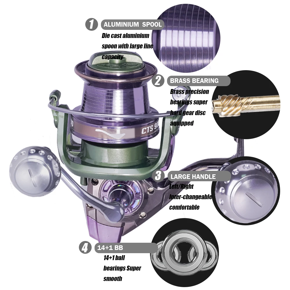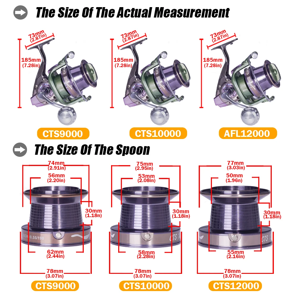 Carrete De Pesca serie 9000 -12000 carrete giratorio De Metal completo 14 + 1BB 4,0: 1 arrastre máximo 25kg.