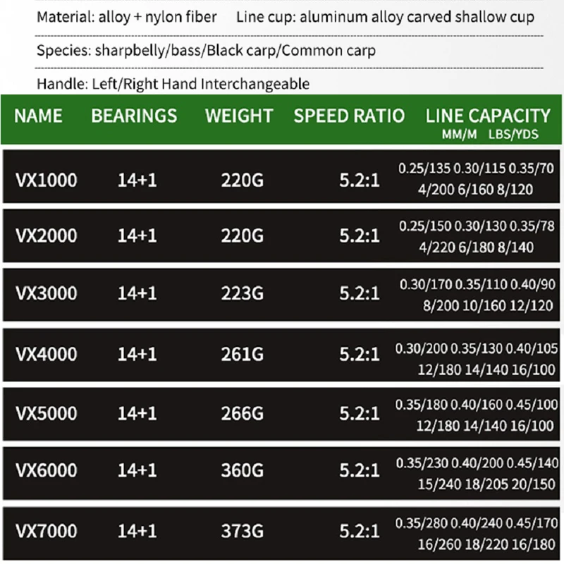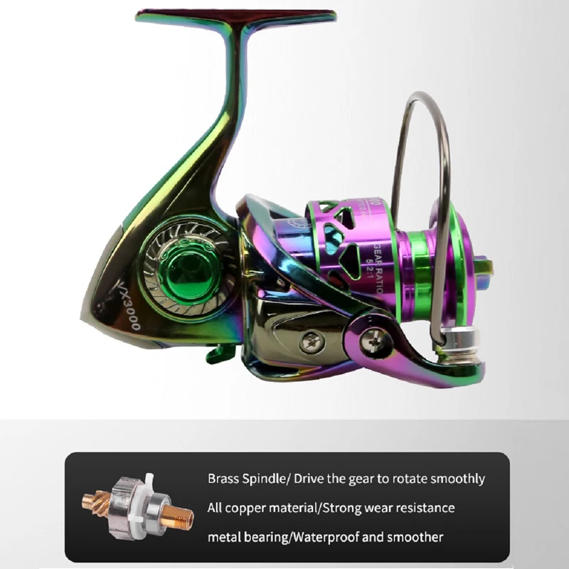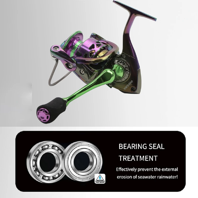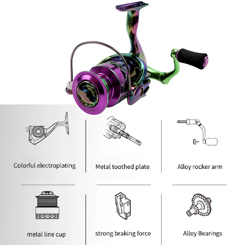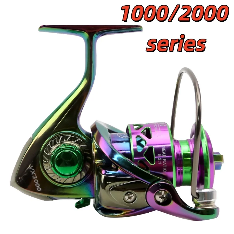 Colorido serie 1000/2000 rodamientos de carrete de pesca 14+1 carrete de pesca giratorio de Metal balancín para pesca cebo fundido carrete pesca en lago