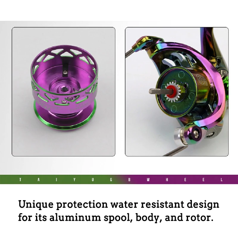 Diseño único de protección resistente al agua para su carrete, cuerpo y rotor de aluminio.