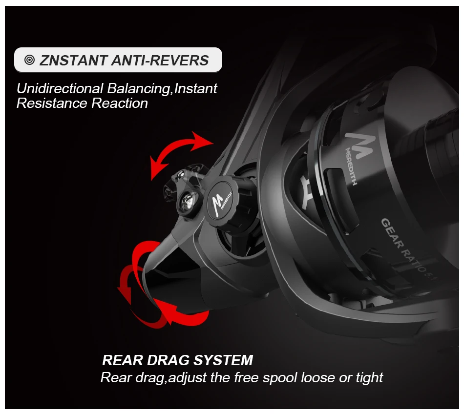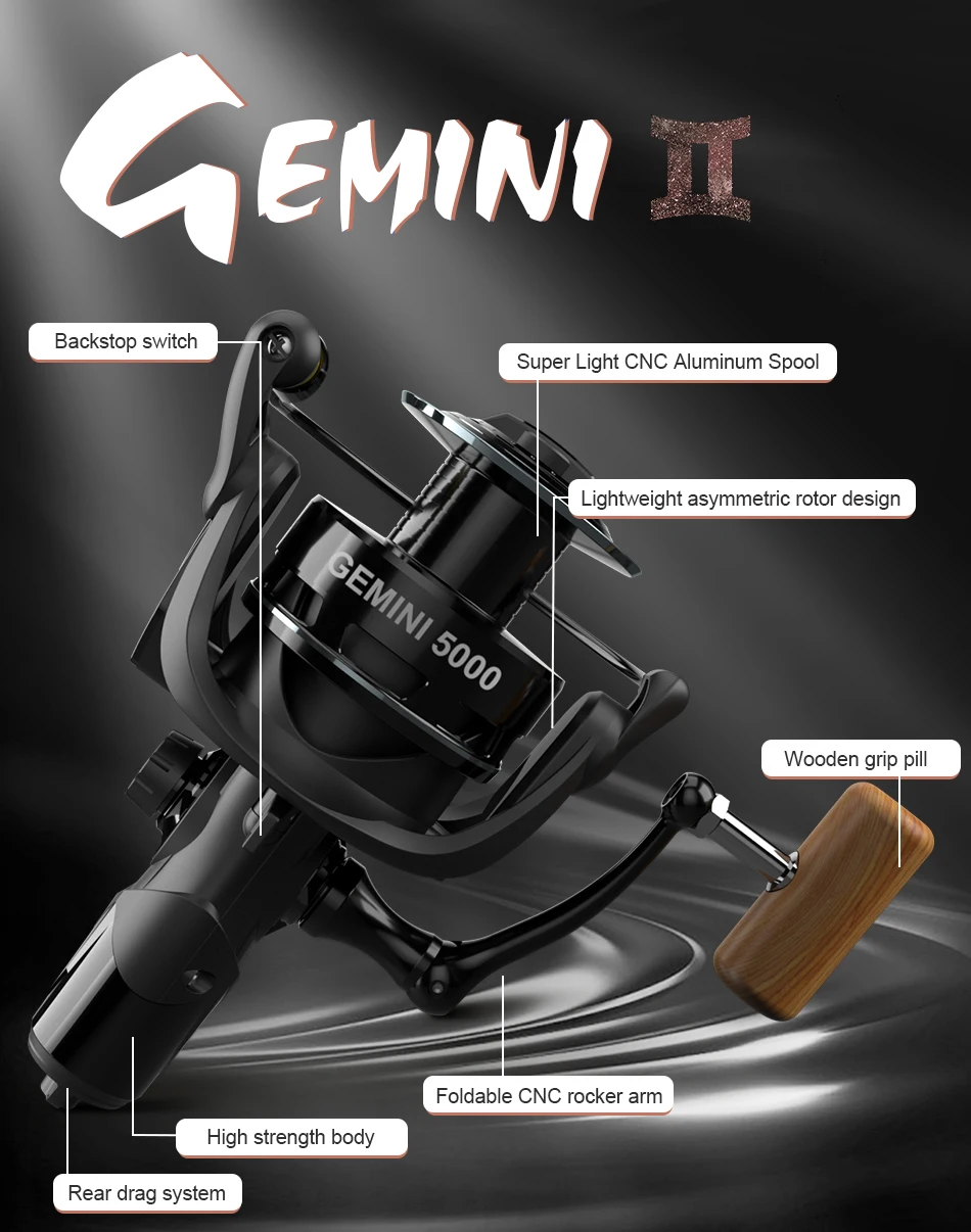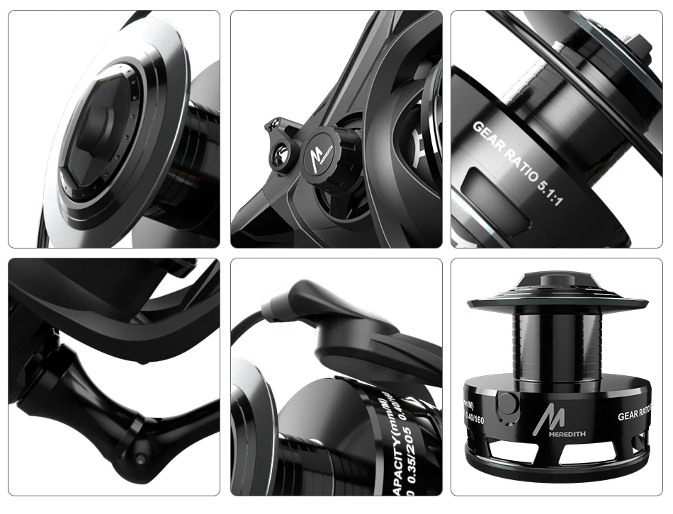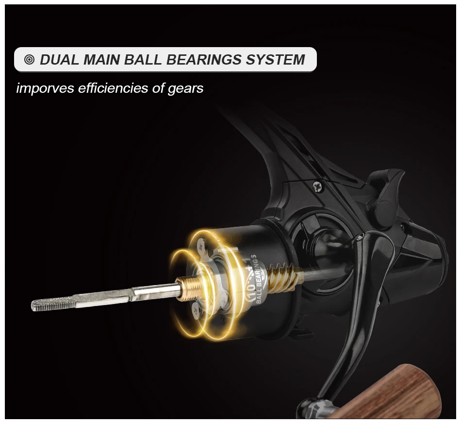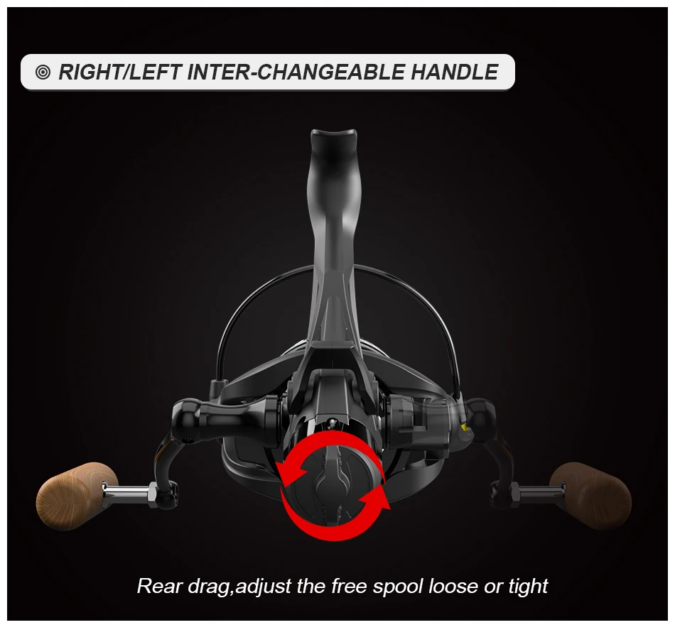 Carrete de pesca giratorio único con arrastre delantero y trasero clásico y alta tecnología.