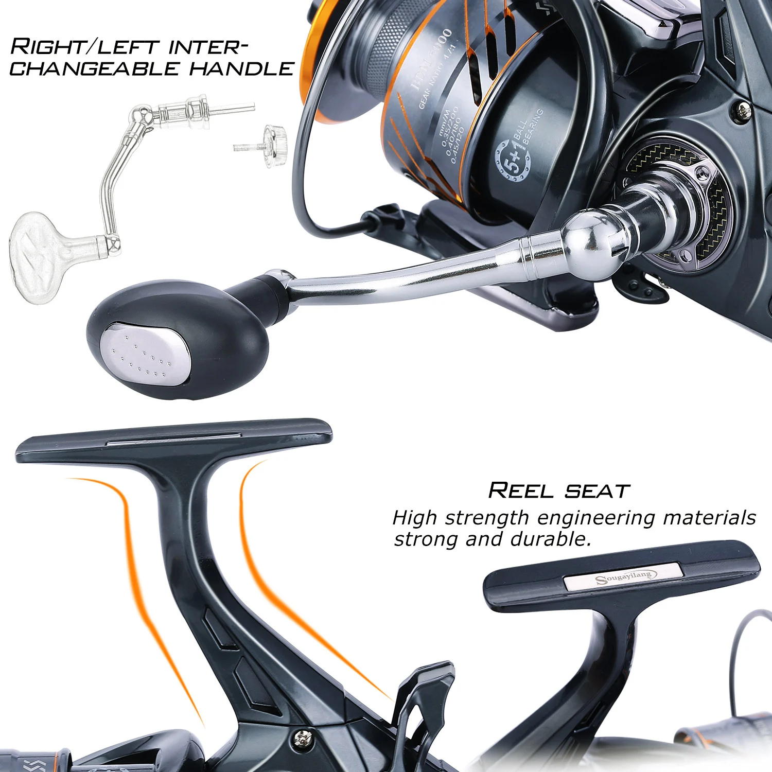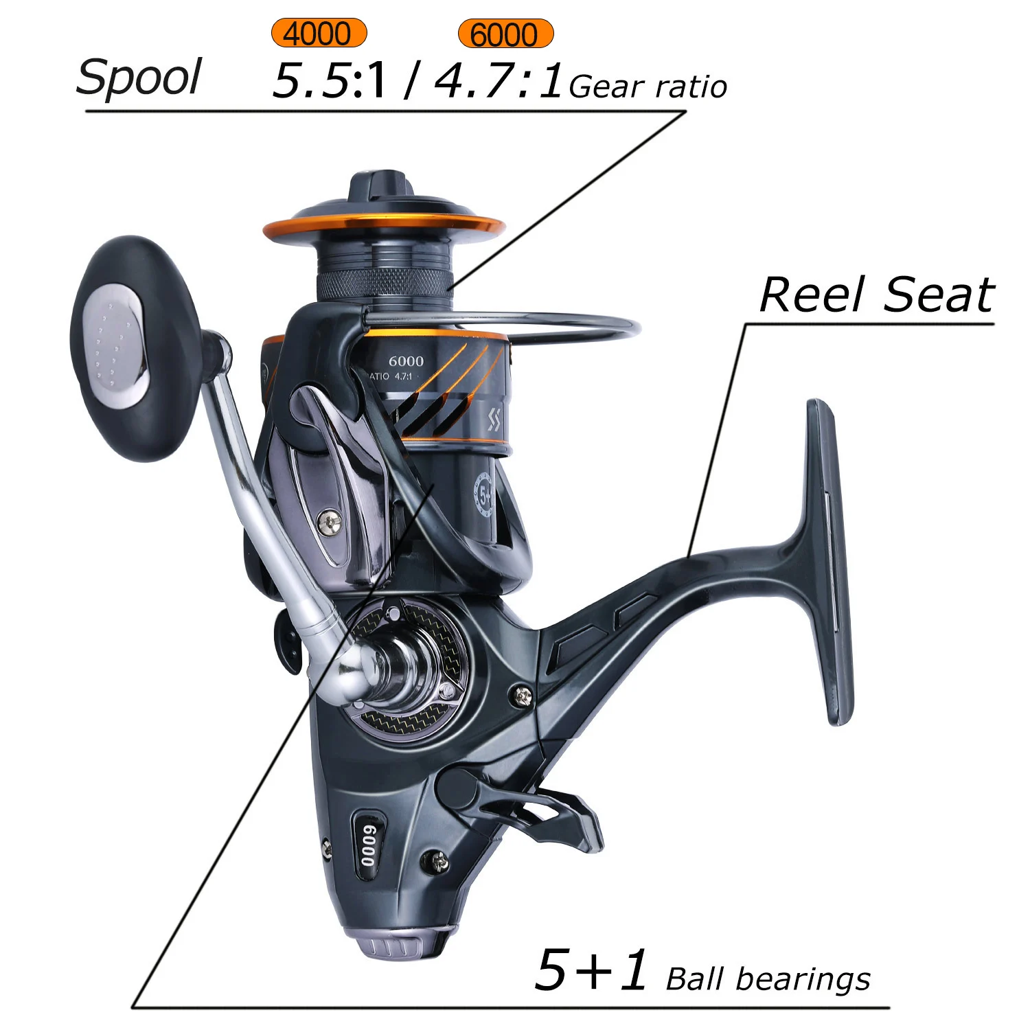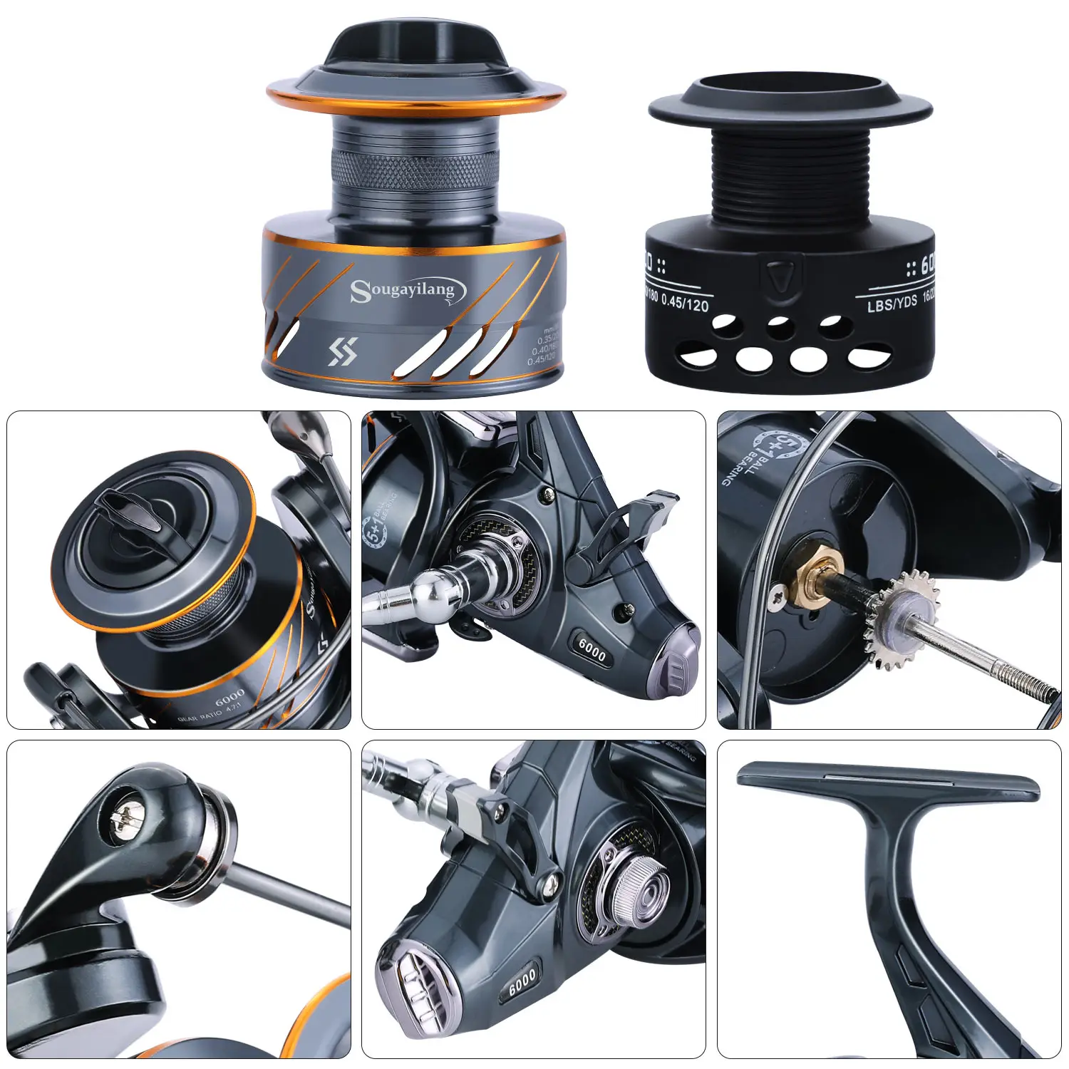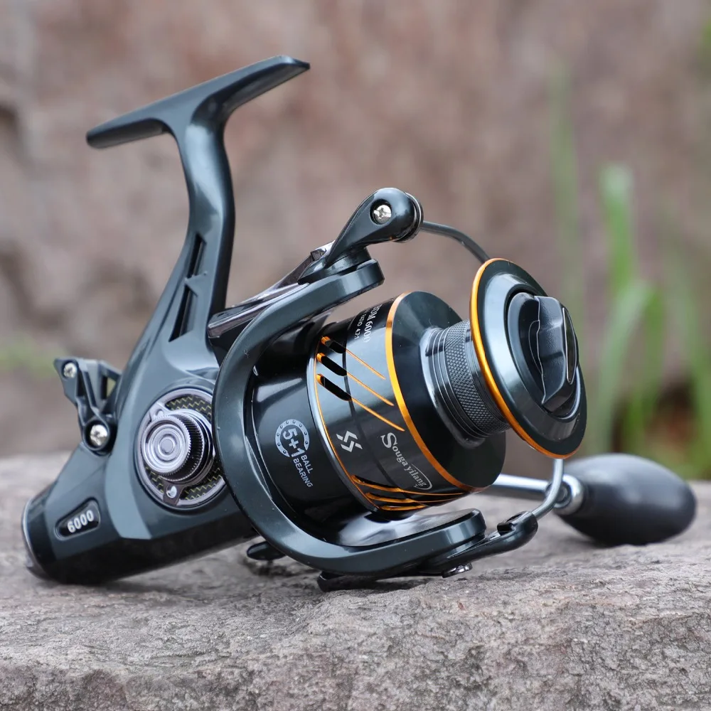 Carrete de pesca Sougayilang 5 + 1BB serie 4000/6000 con carrete libre carrete giratorio 10KG fibra de carbono Drag Power aparejos de pesca de carpa