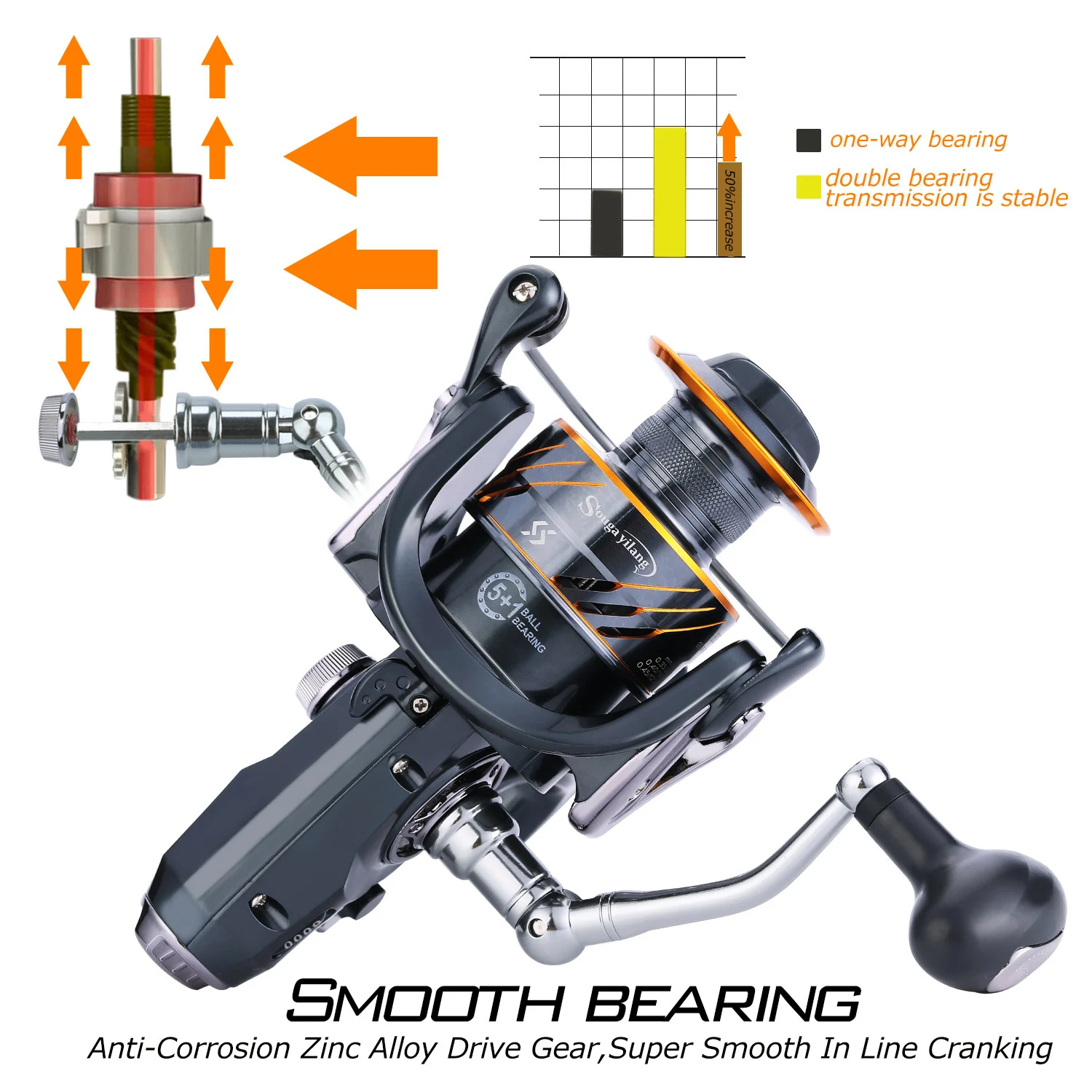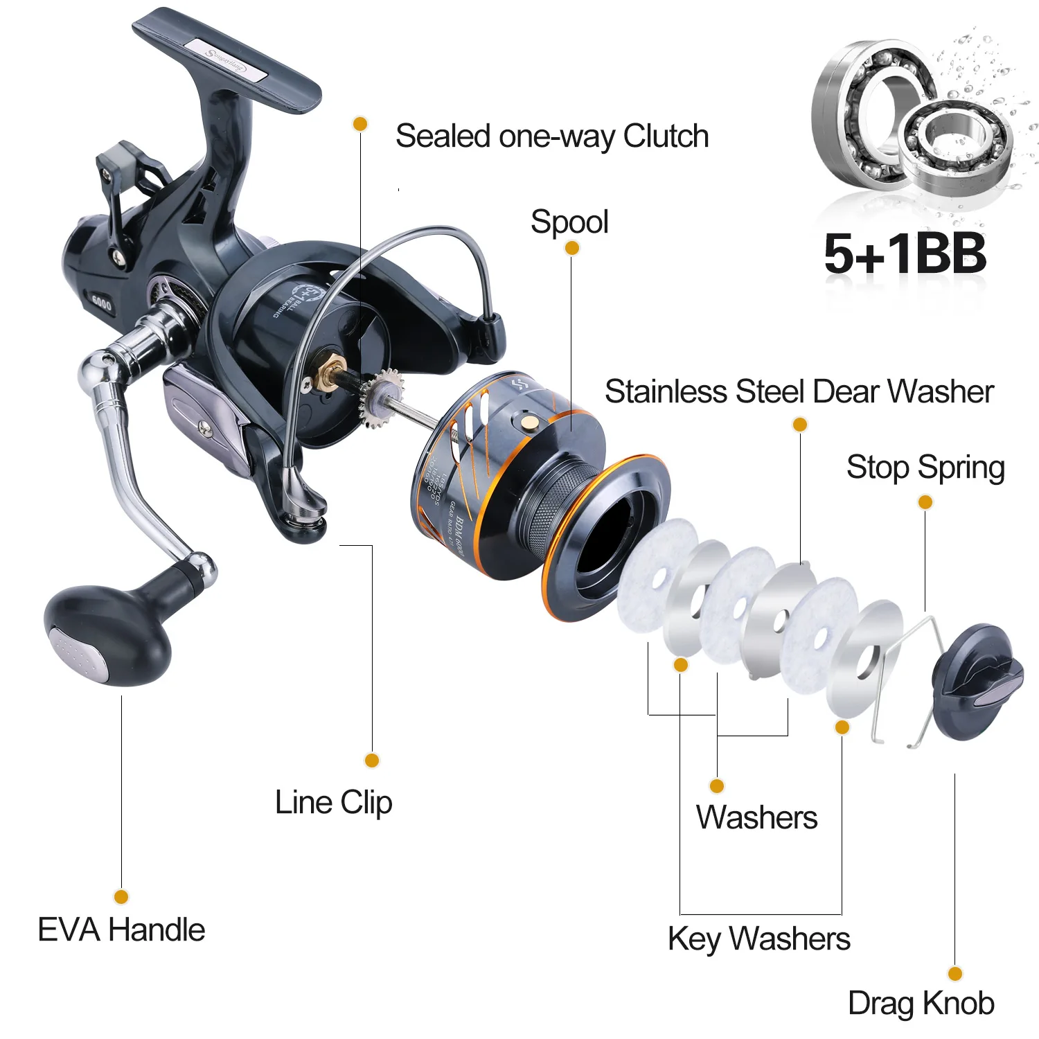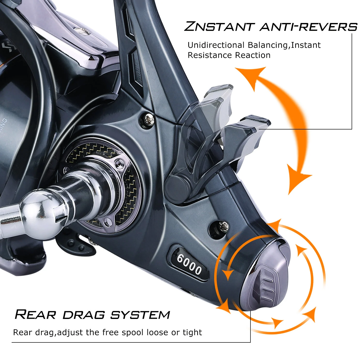 Carrete de pesca Sougayilang 5 + 1BB serie 4000/6000 con carrete libre carrete giratorio 10KG fibra de carbono Drag Power aparejos de pesca de carpa