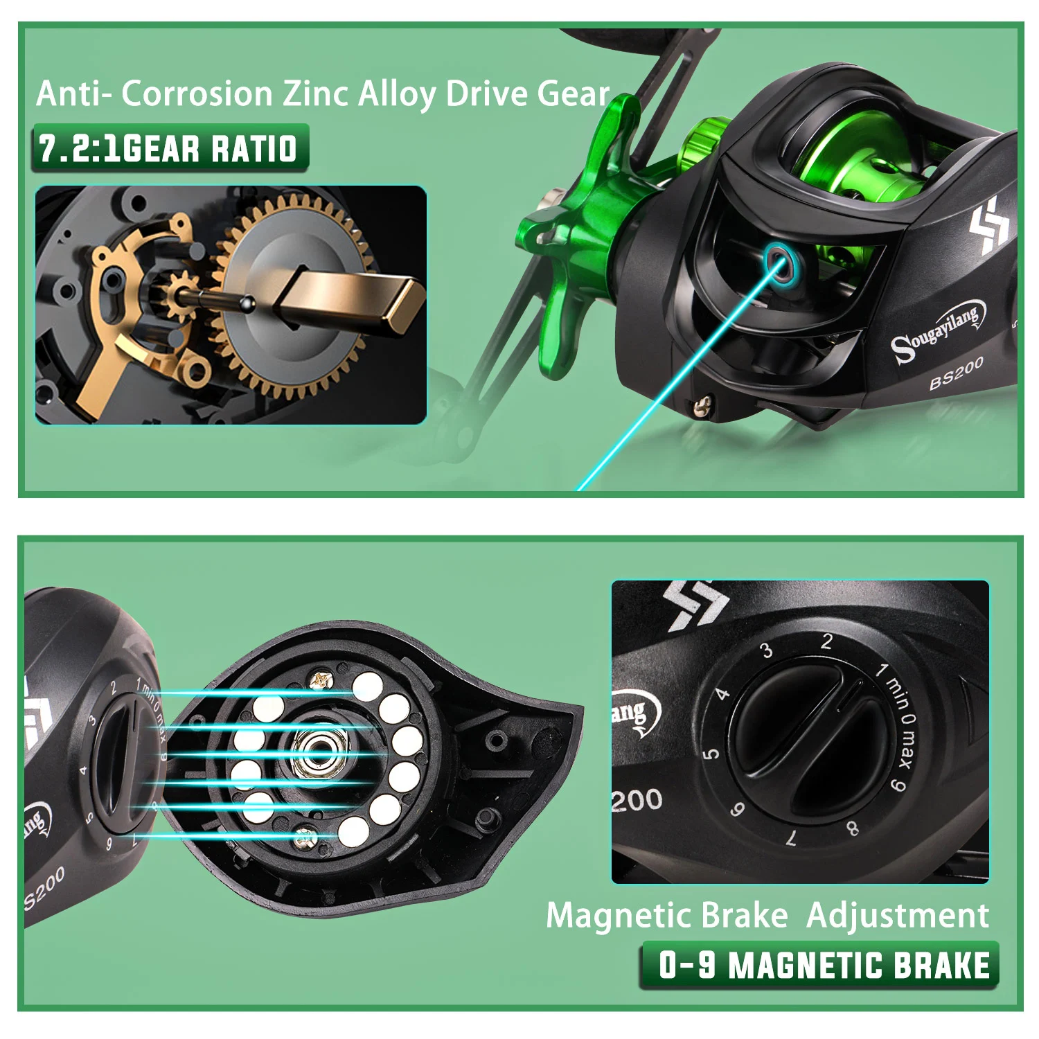 Carrete de pesca Sougayilang, relación de engranaje 7,2:1, carrete de Baitcasting de 10kg de arrastre máximo con carrete de aluminio para Pesca de agua dulce Luya