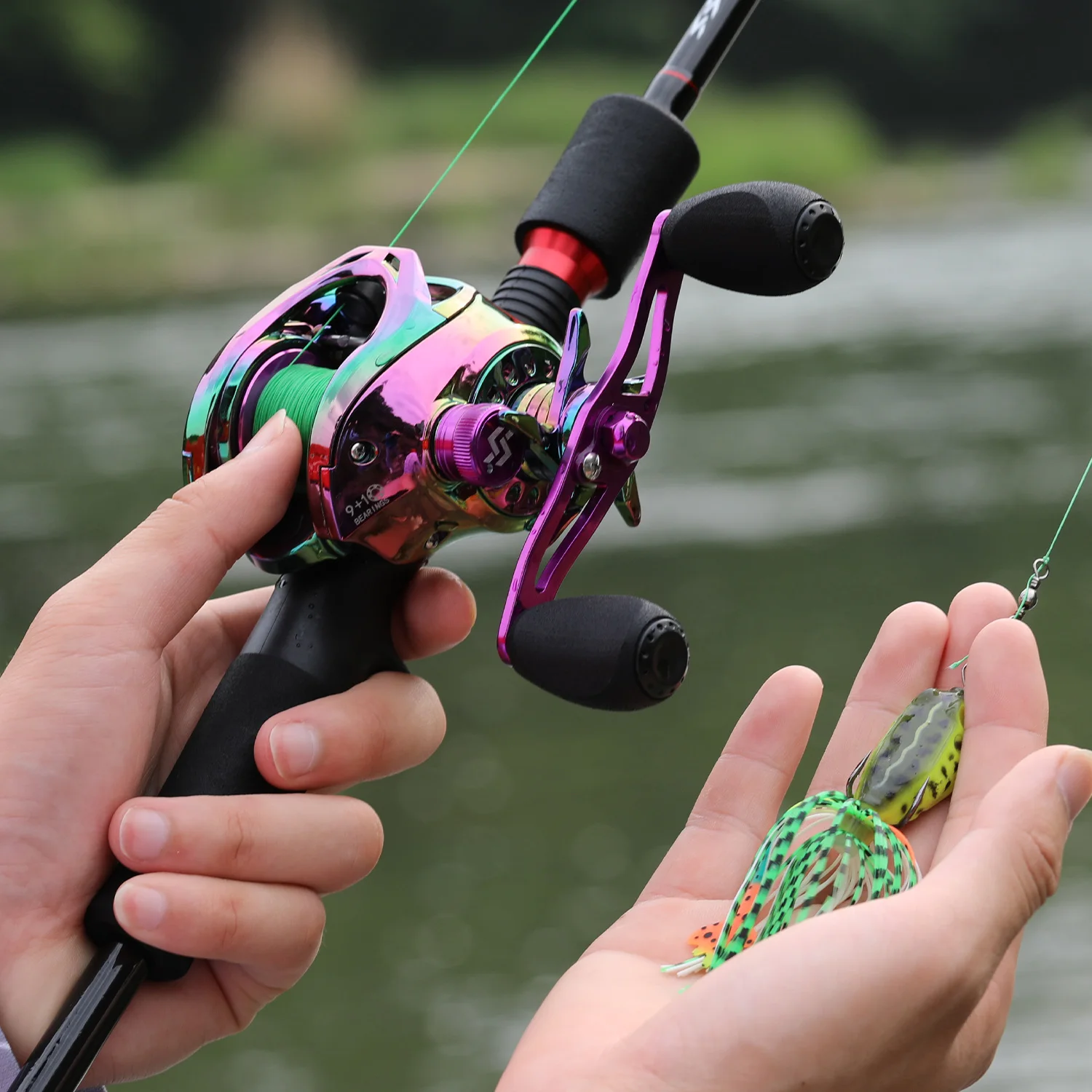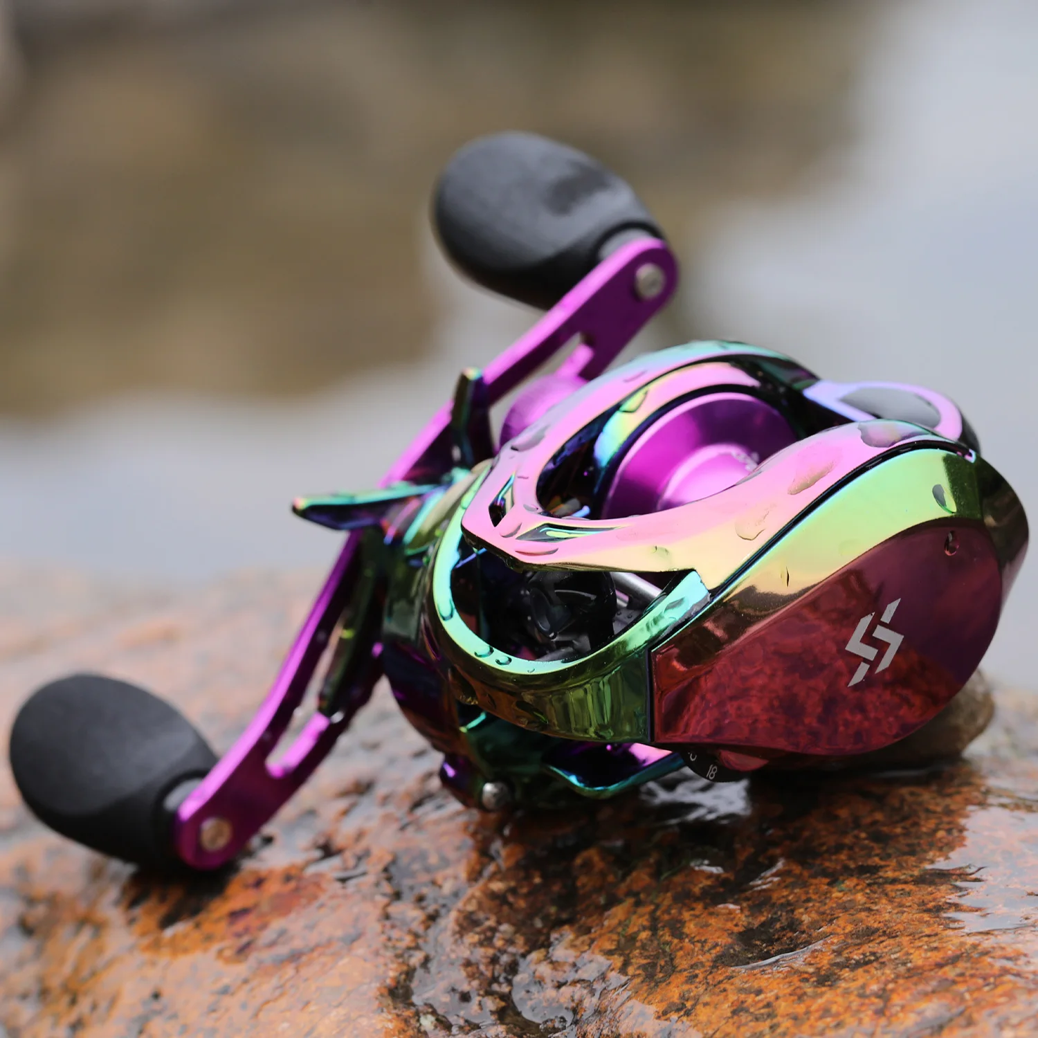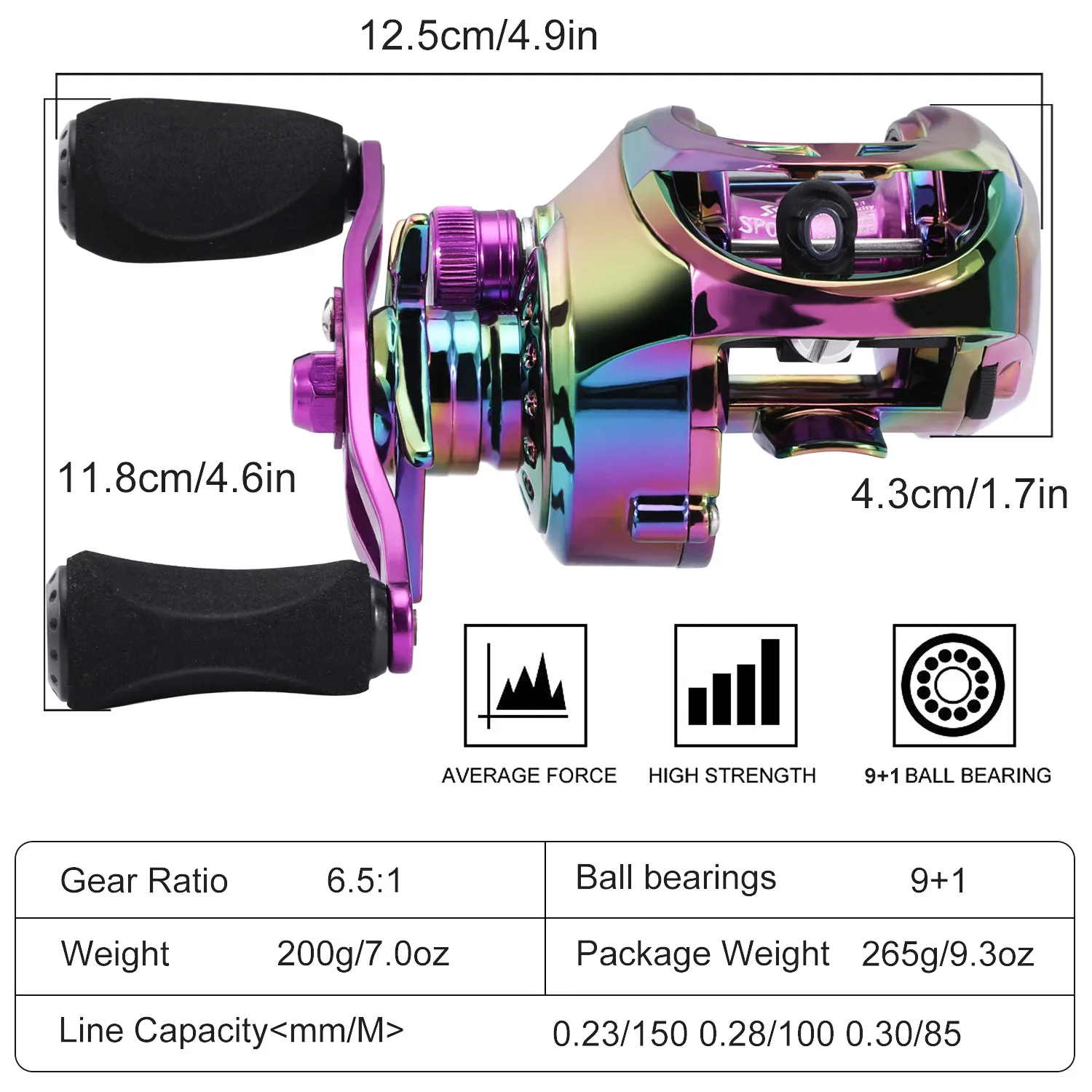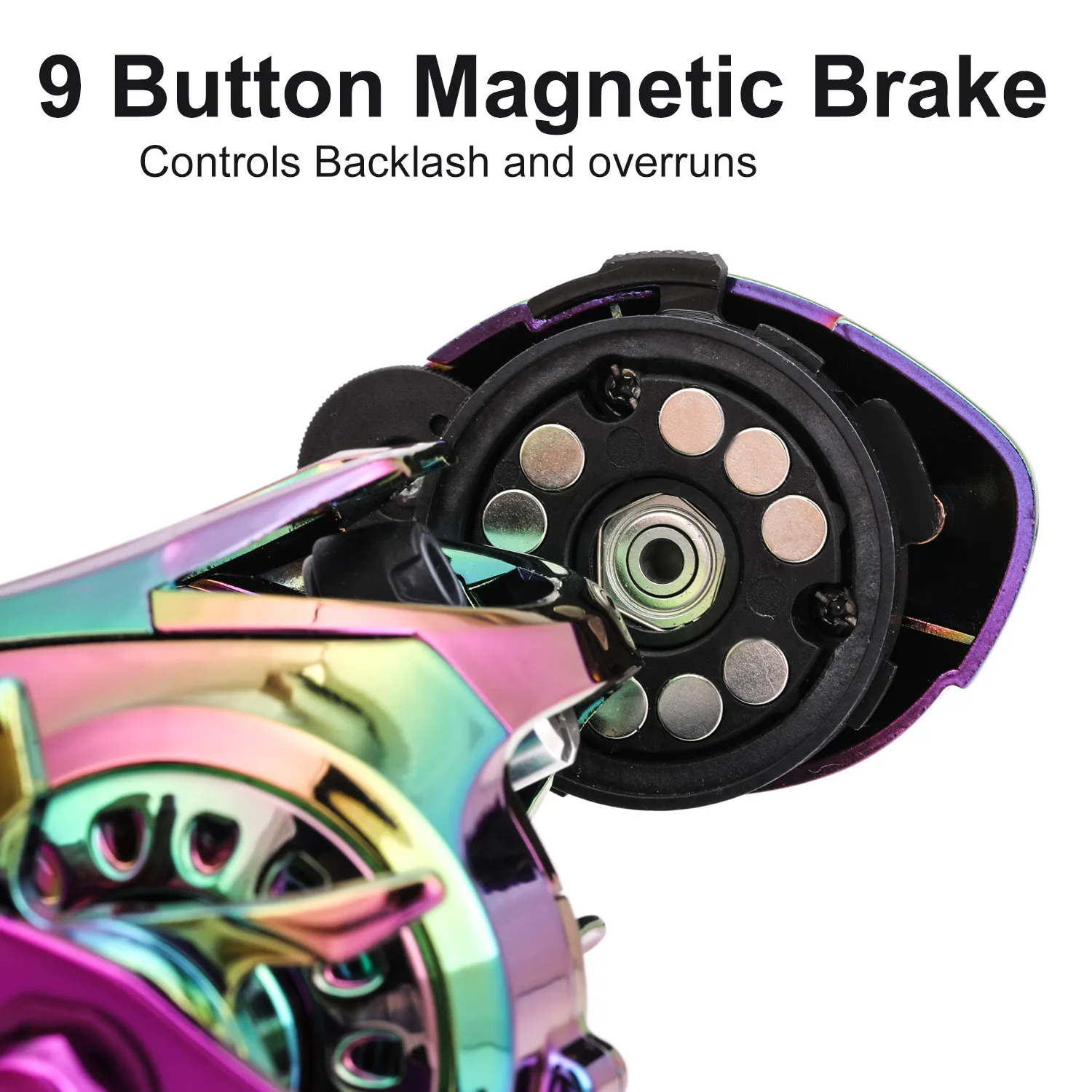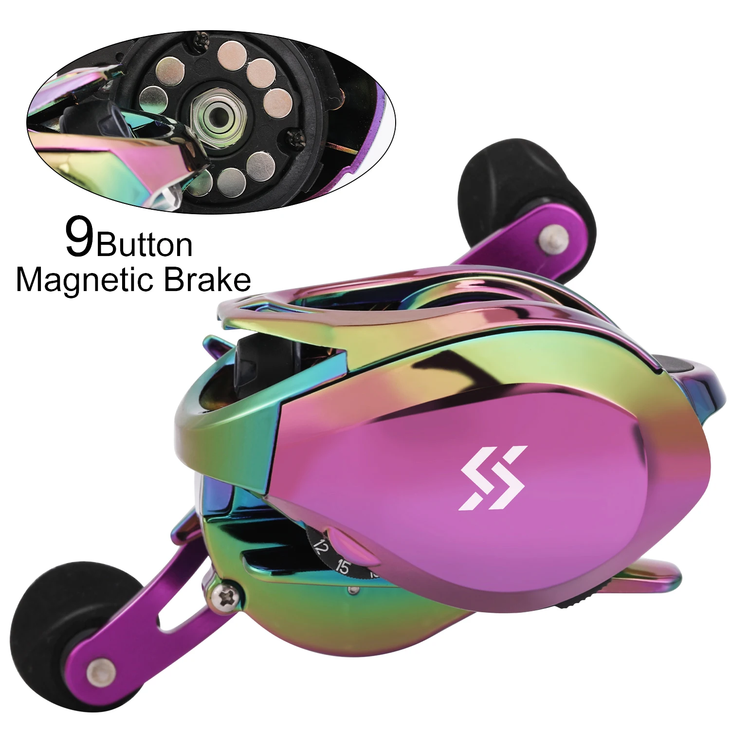 Sougayilang Colorido Baitcasting Carrete 9 + 1BB 6,5: 1 Relación de engranaje Sistema de freno magnético Rueda de pesca Max Drag 17.6LB Carrete de pesca