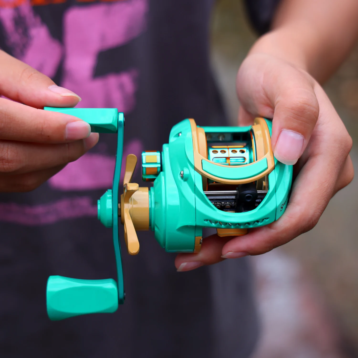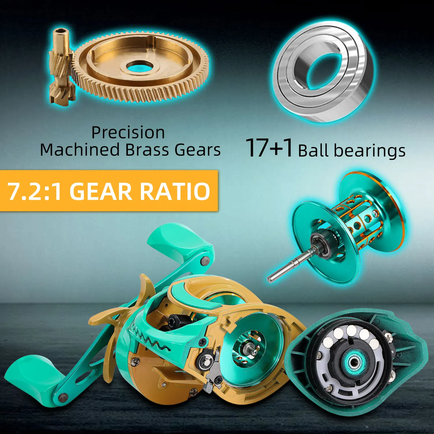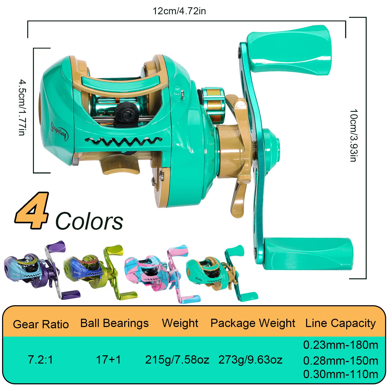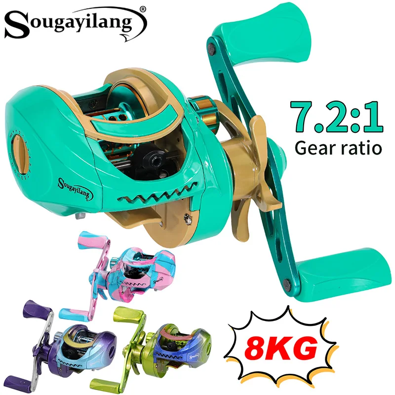 Carrete de pesca Baitcast Sougayilang, relación de engranaje 7,2: 1, carrete Baitcasting multicolor de arrastrar máximo de 8 kg con carrete de aluminio, carrete de agua dulce