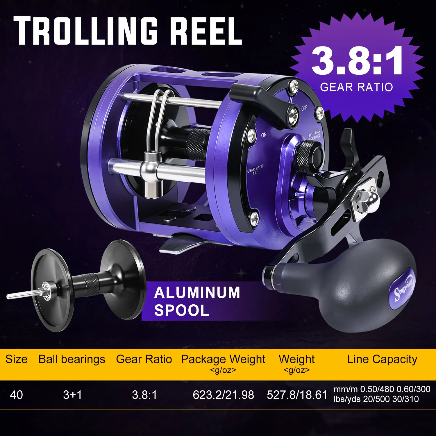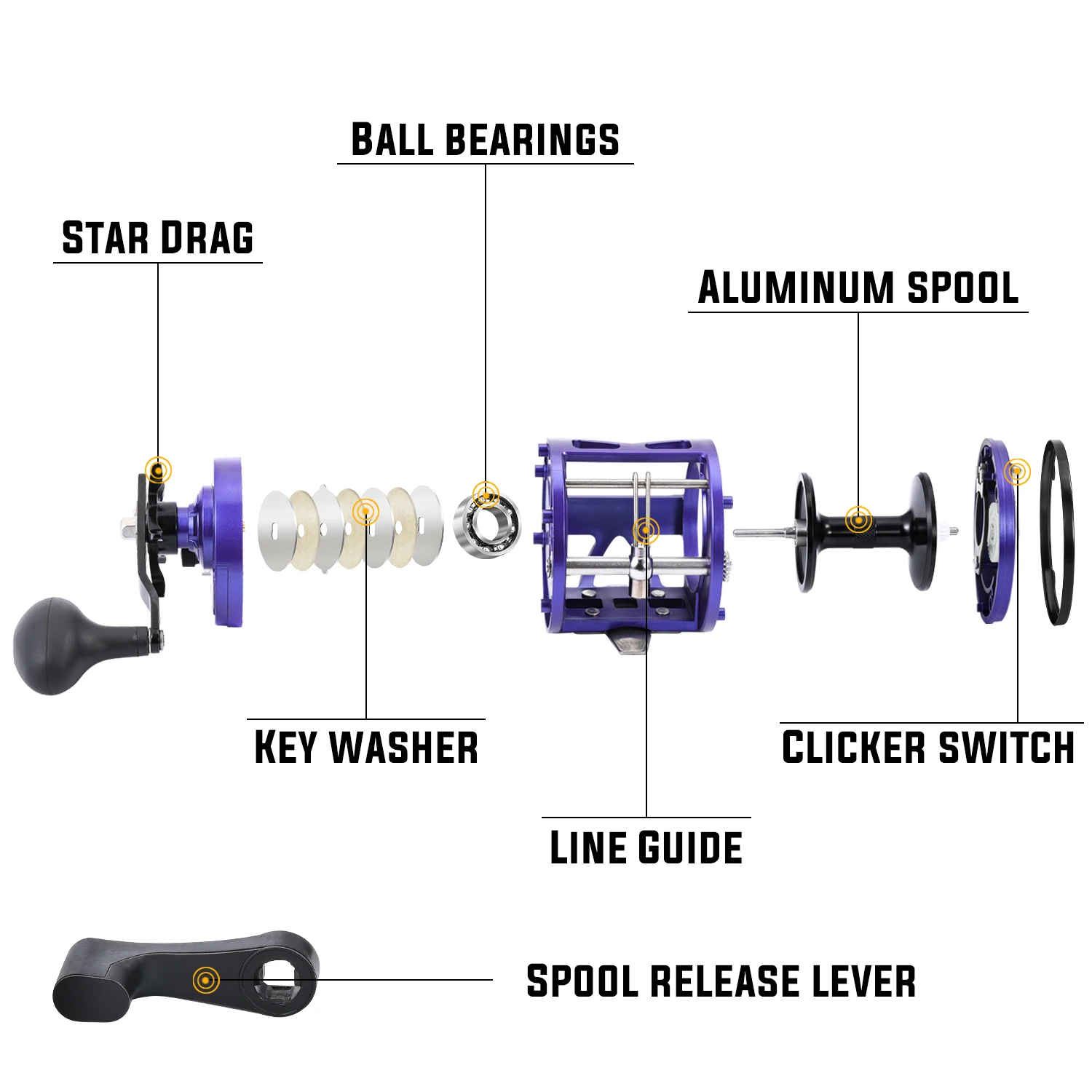 Fabricado con metal duradero, este carrete está diseñado para resistir la prueba de entornos marinos y de agua dulce.