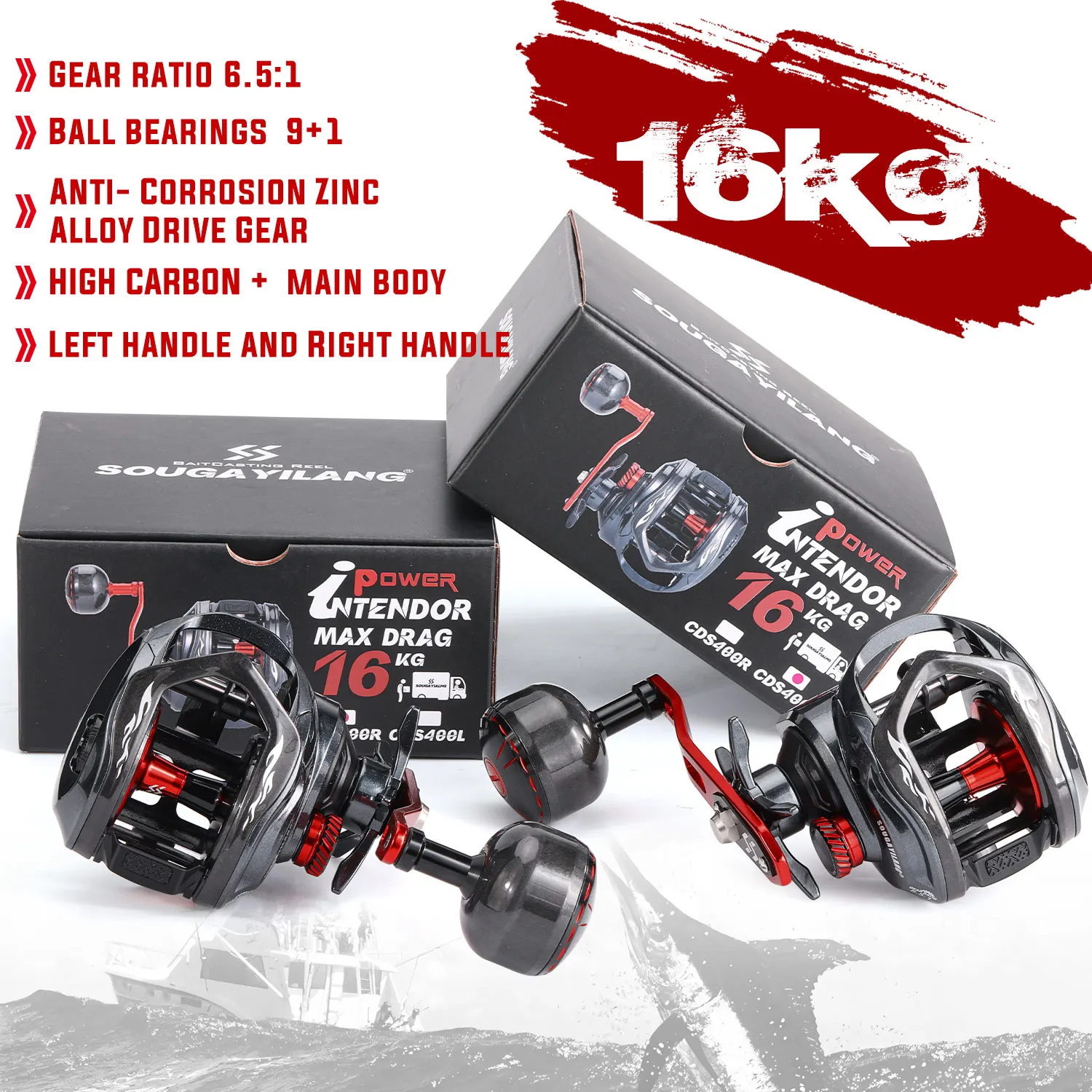 Carrete de Baitcasting Sougayilang CDS400, arrastre máximo de 16kg, freno magnético, relación de engranaje 6,5:1, cuerpo de fibra de carbono, carrete de pesca de un solo mango