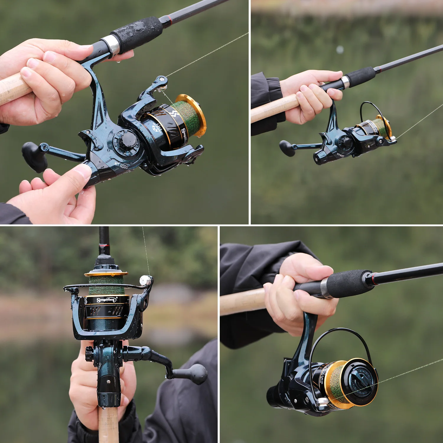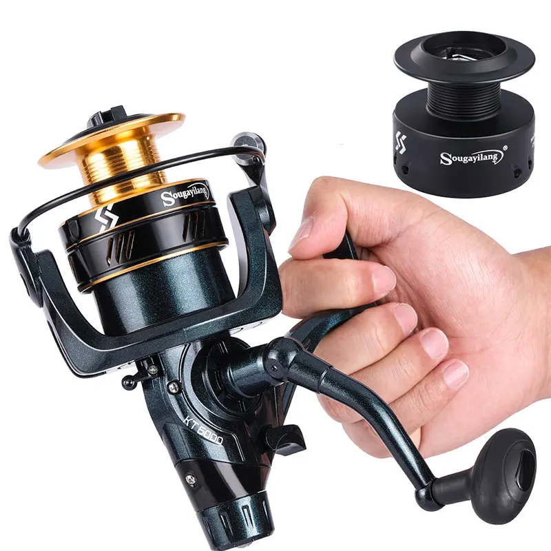 3. El carrete alimentador de cebo Sougayilang utiliza un mango CNC de aluminio intercambiable izquierdo/derecho y un mango de goma suave de diseño ergonómico, lo que facilita el uso del carrete y mejora en gran medida la comodidad del agarre.