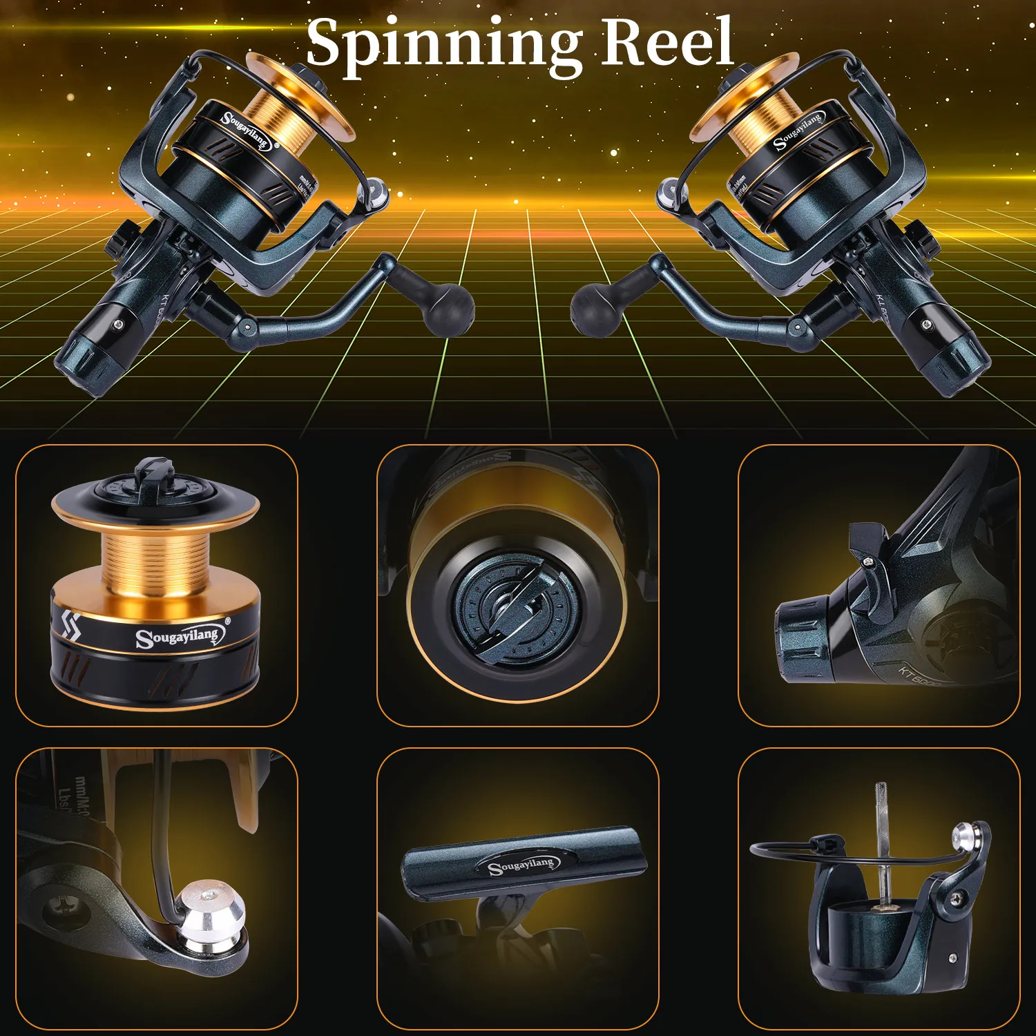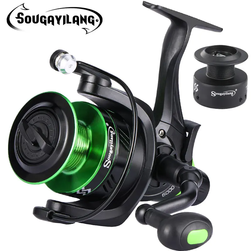 1. El carrete de pesca giratorio Sougayilang ofrece un eje principal más grueso mejorado, rodamientos de bolas de acero inoxidable, piñón de latón mecanizado con precisión y arandelas de arrastre triples, y un sistema de arrastre de fibra de carbono con arrastre de 33 libras para pescar los peces de caza más grandes.