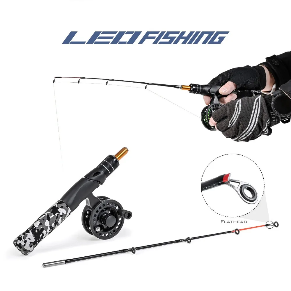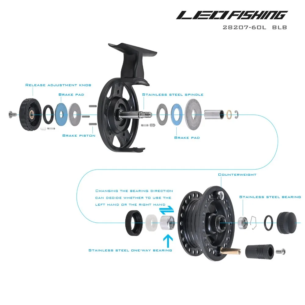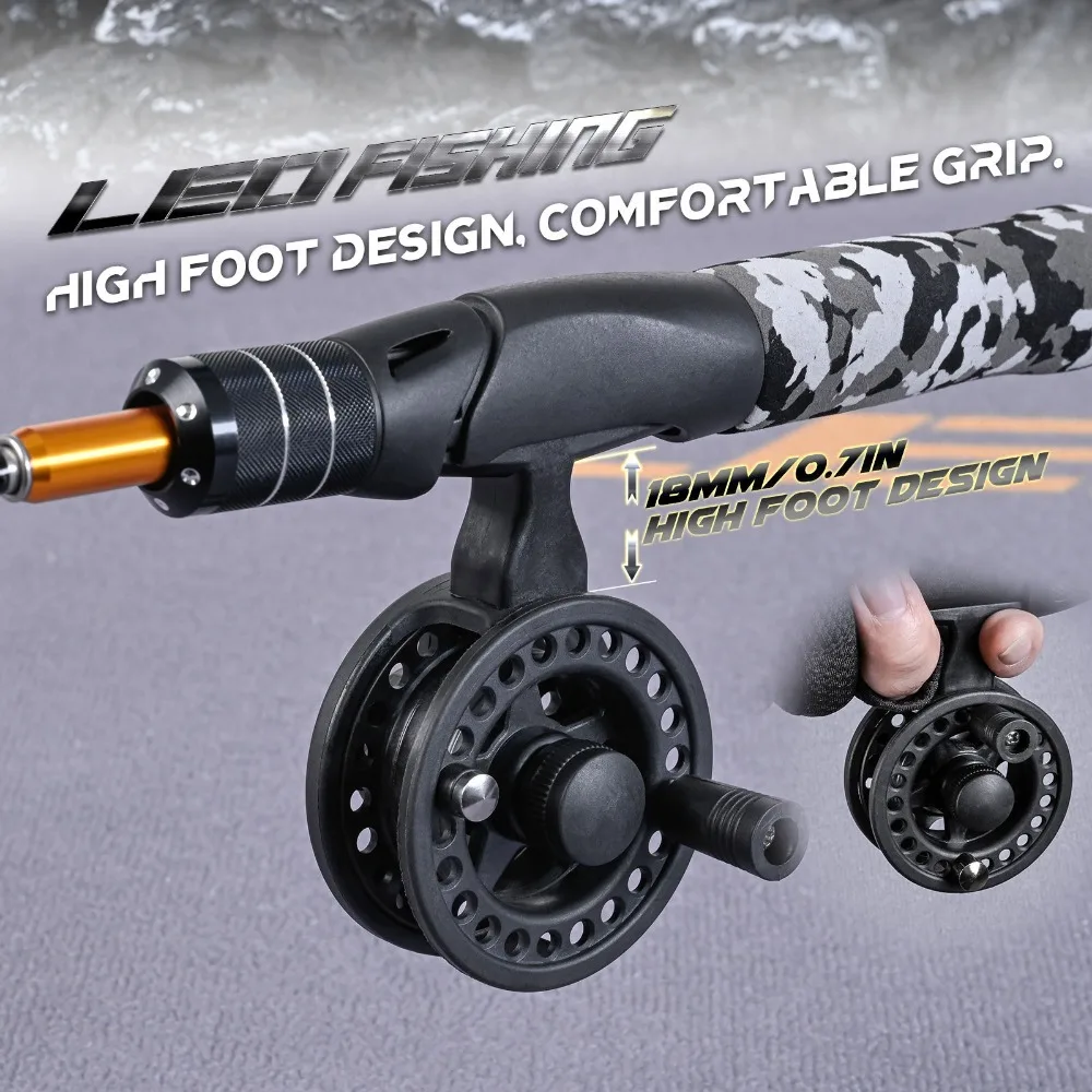 -Smooth Guides: LEOFISHING Ice fising pole's guides is made of Stainless steel with Ceramic inserts make it more smooth and durable, avoid line sticking into the guides, minimize friction while also enhancing sensitivity by transferring vibrations from the line through the guide to the rod and to your hand.