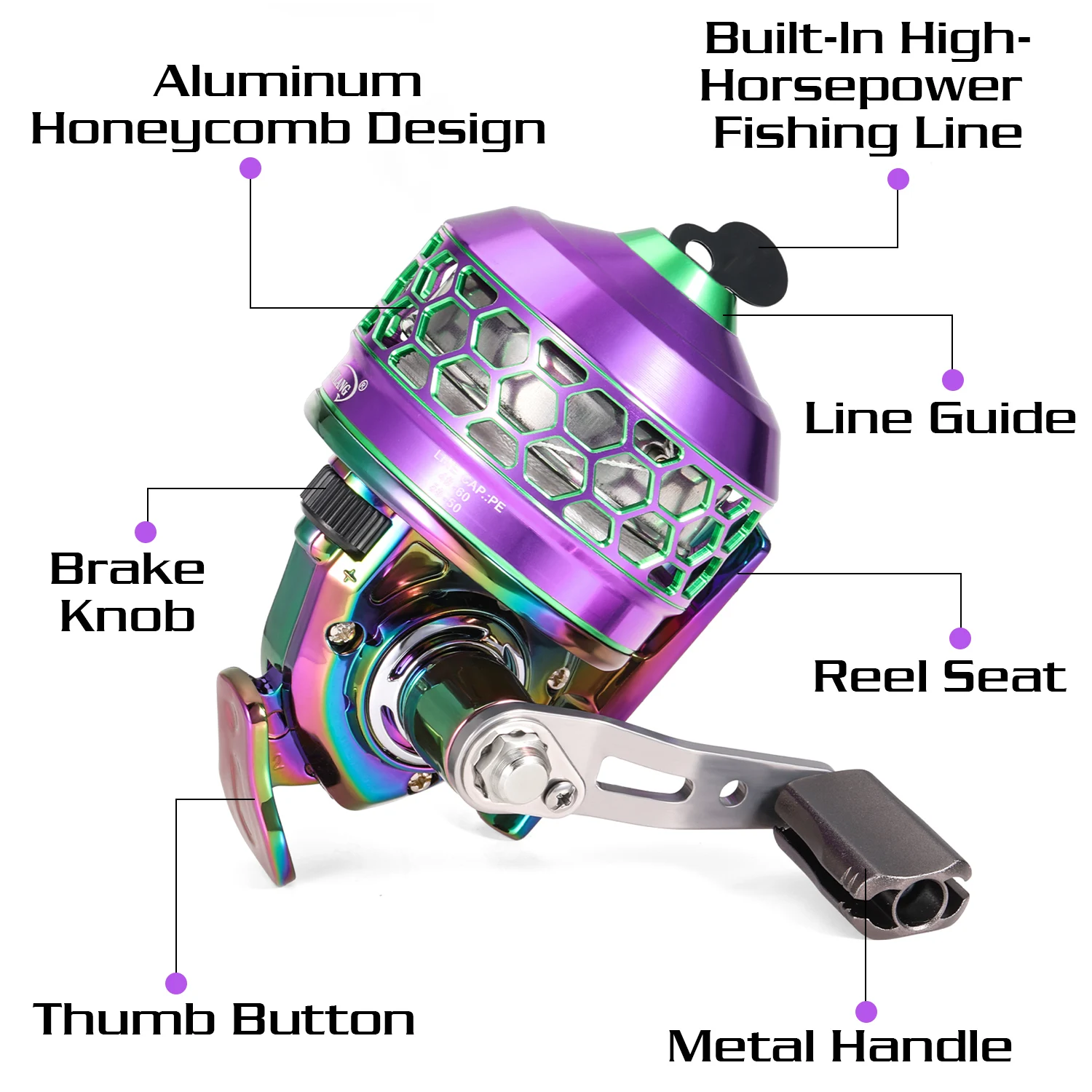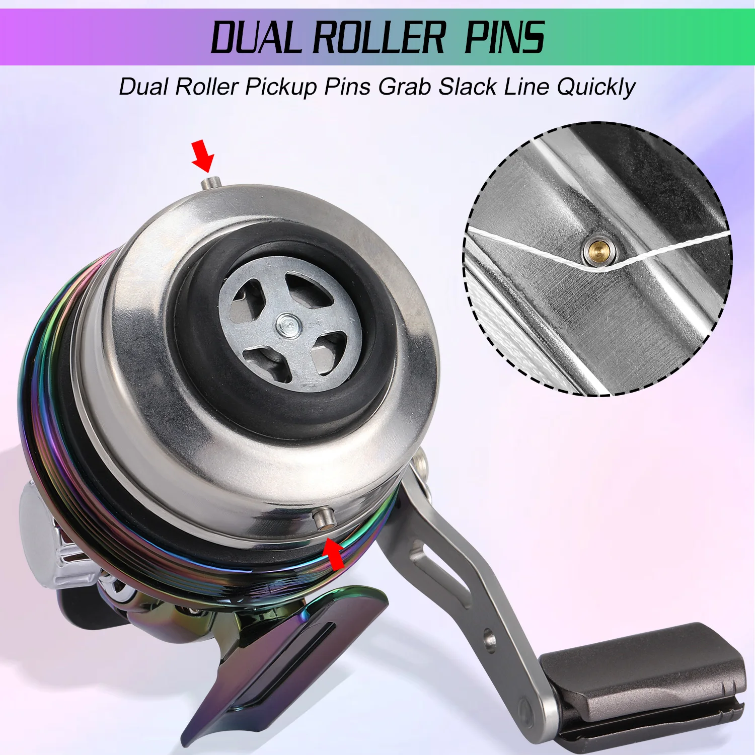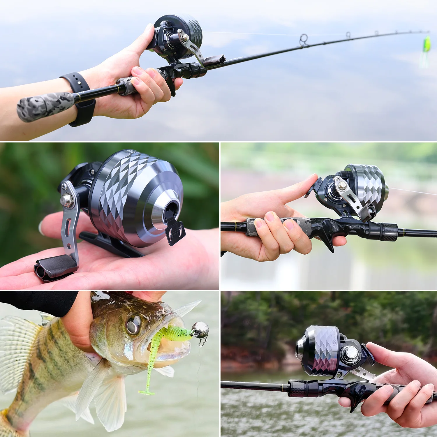 El carrete giratorio estilo Sougayilang Spincaster tiene un 33% más de capacidad de hilo de pescar que los carretes de botón competitivos, lo que significa que puede realizar lanzamientos más largos, pescar para más especies en condiciones de agua más profundas.