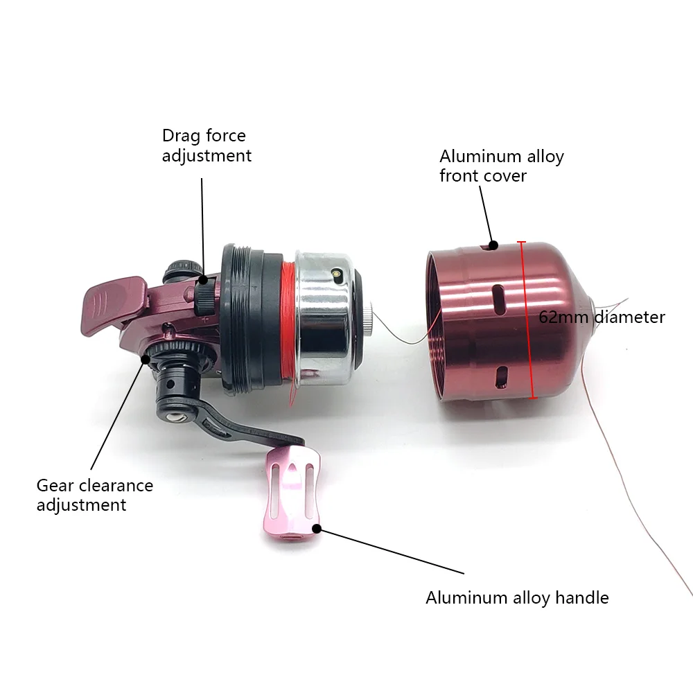 El balancín está en posición horizontal en la parte posterior, lo que resulta en un mayor espacio entre los rodillos y una salida de hilo de pescar más suave.