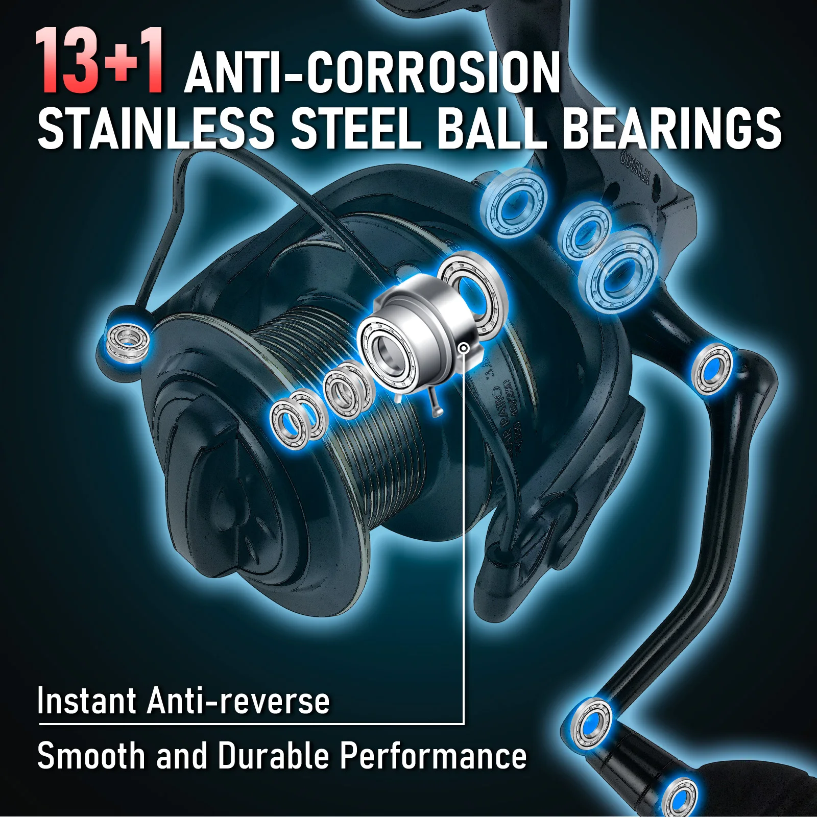 13+1 Rodamientos de agua salada de acero inoxidableCon engranajes equilibrados por computadora, cree una experiencia de lanzamiento y recuperación suave como la mantequilla.Mantenga su viaje de pesca suave y sin preocupaciones por el abuso de sal y arena.