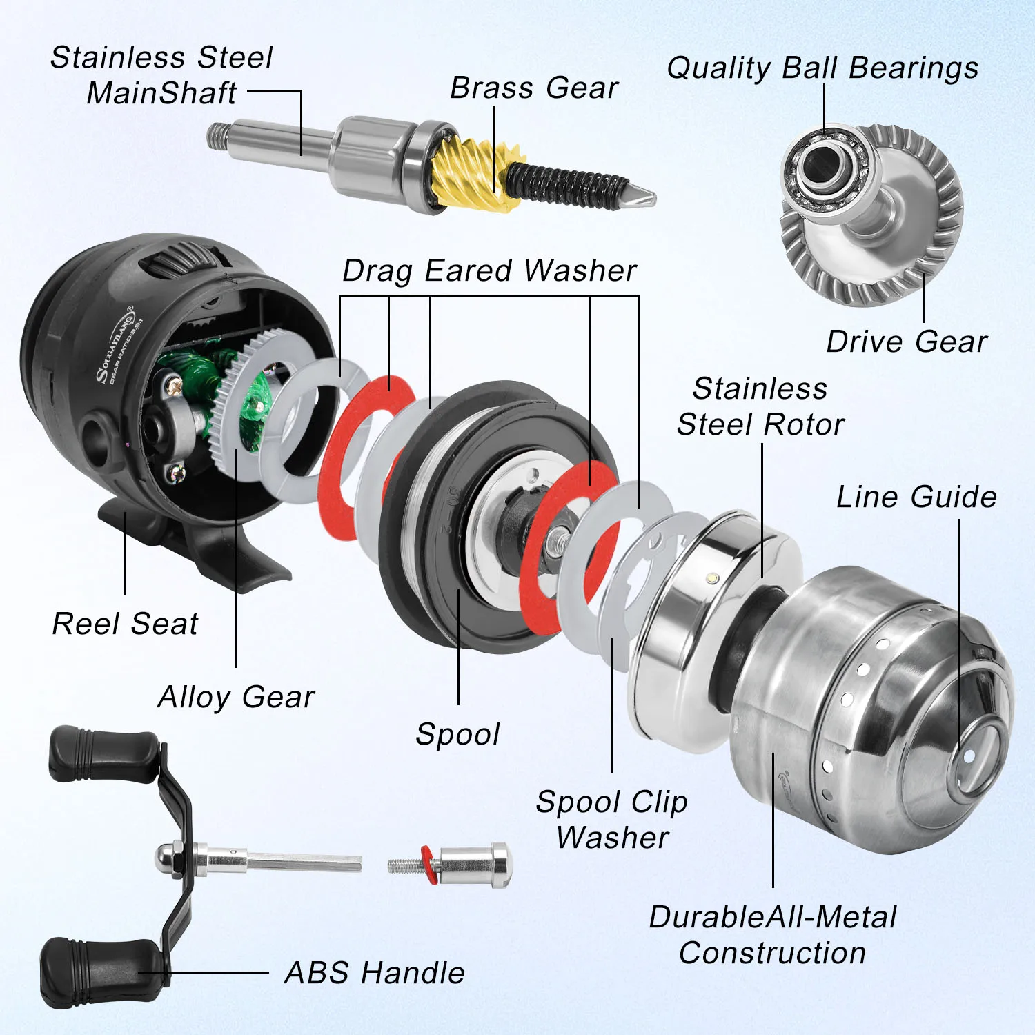 ALTO RENDIMIENTO: el corazón de un buen carrete de pesca Spincasting está en el sistema de recogida de línea.El carrete Sougayilang Spincaster cuenta con un sistema de doble pastilla de acero inoxidable que agarra la línea alejada rápidamente