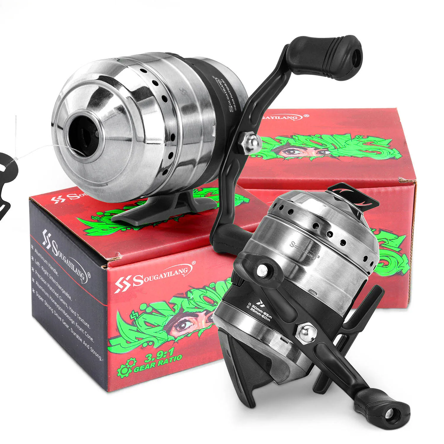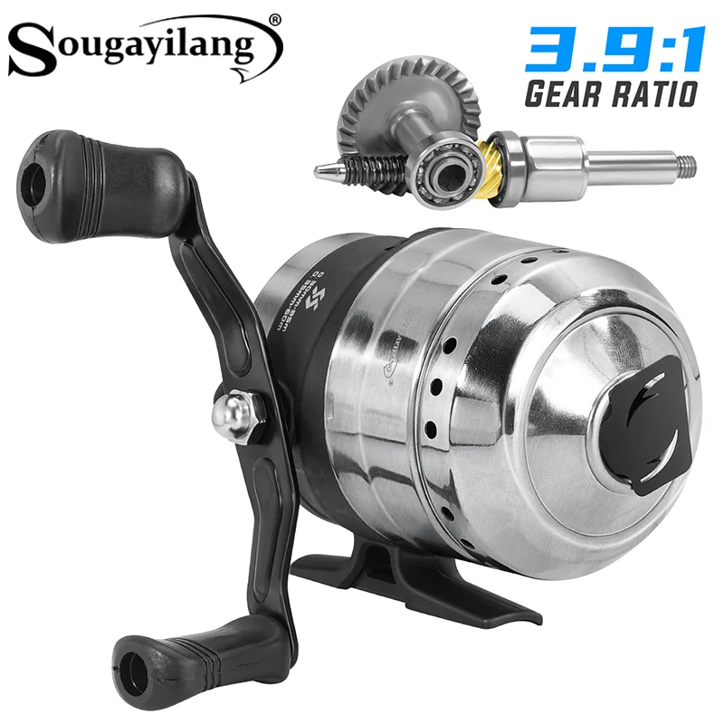Sougayilang carrete de pesca tipo bala volante de lanzamiento 3,9:1 carrete de pesca cerrado con línea rueda de pesca de caza al aire libre