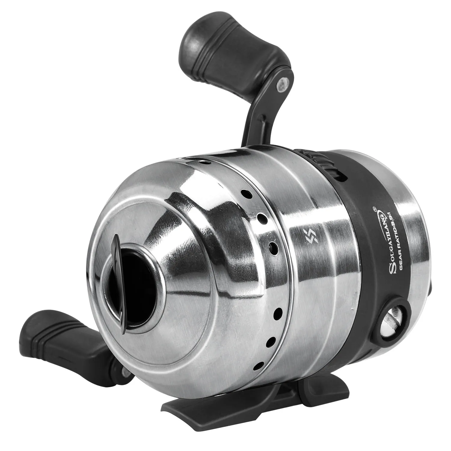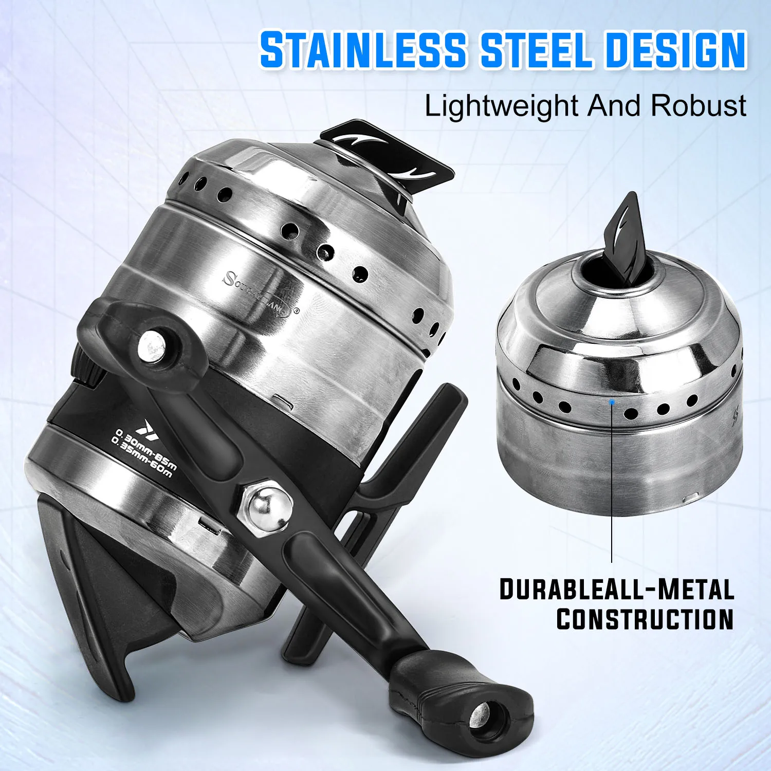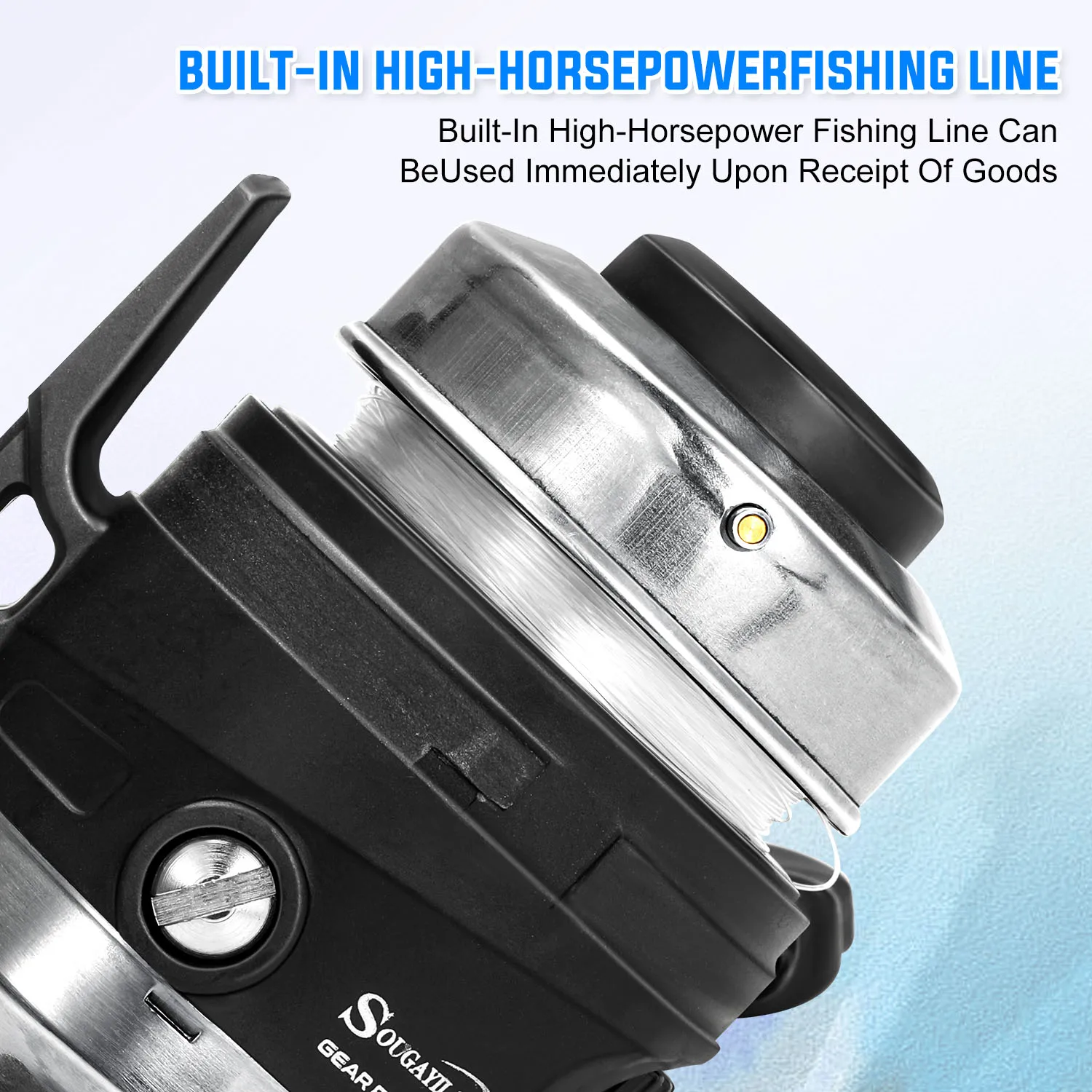 El carrete giratorio estilo Sougayilang Spincaster tiene un 33% más de capacidad de hilo de pescar que los carretes de botón competitivos, lo que significa que puede realizar lanzamientos más largos, pescar para más especies en condiciones de agua más profundas.