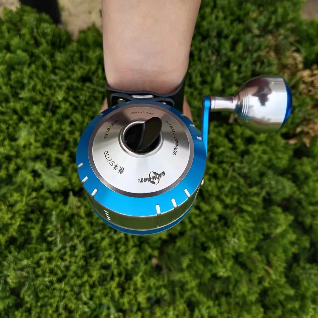 Carrete de pesca con tirachinas, rueda de mano giratoria 3,1: 1, carrete cerrado con línea, rueda de pesca para caza al aire libre
