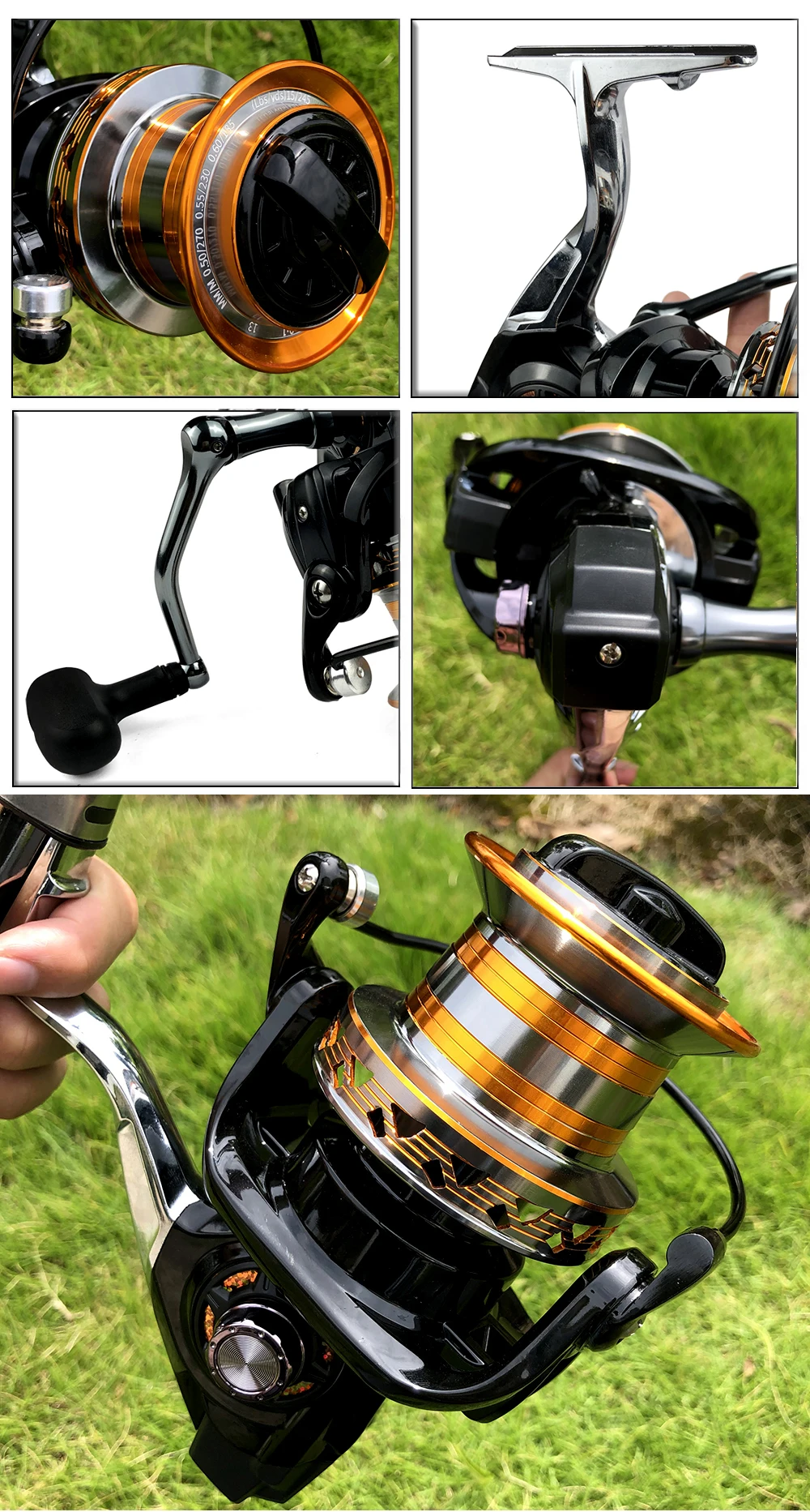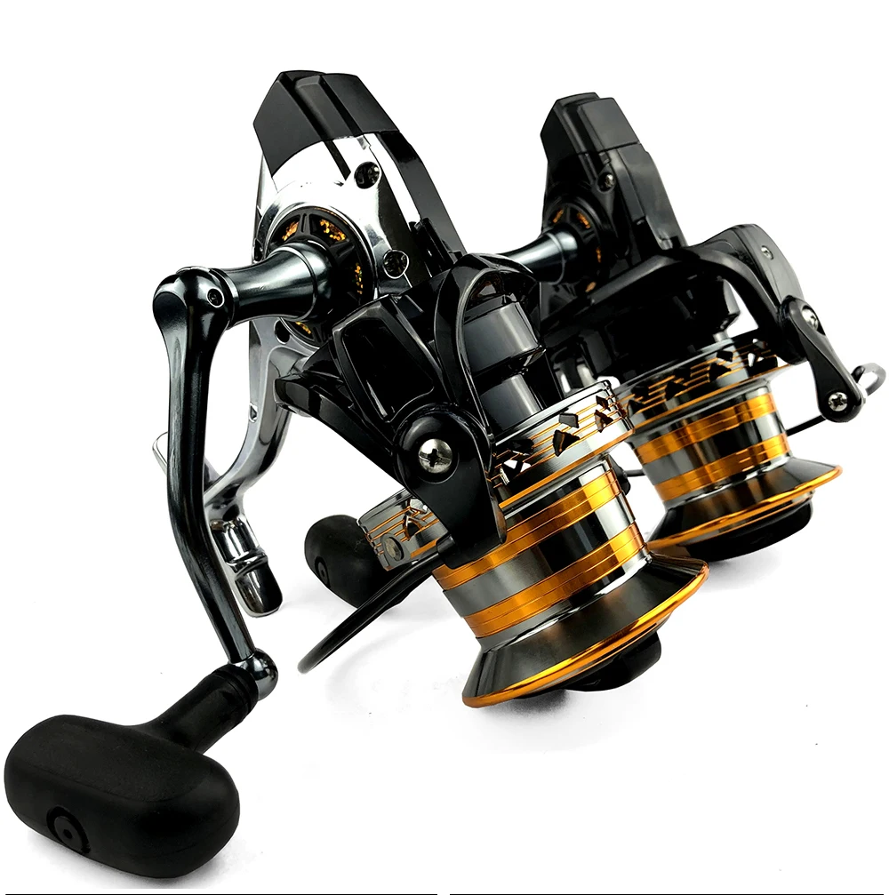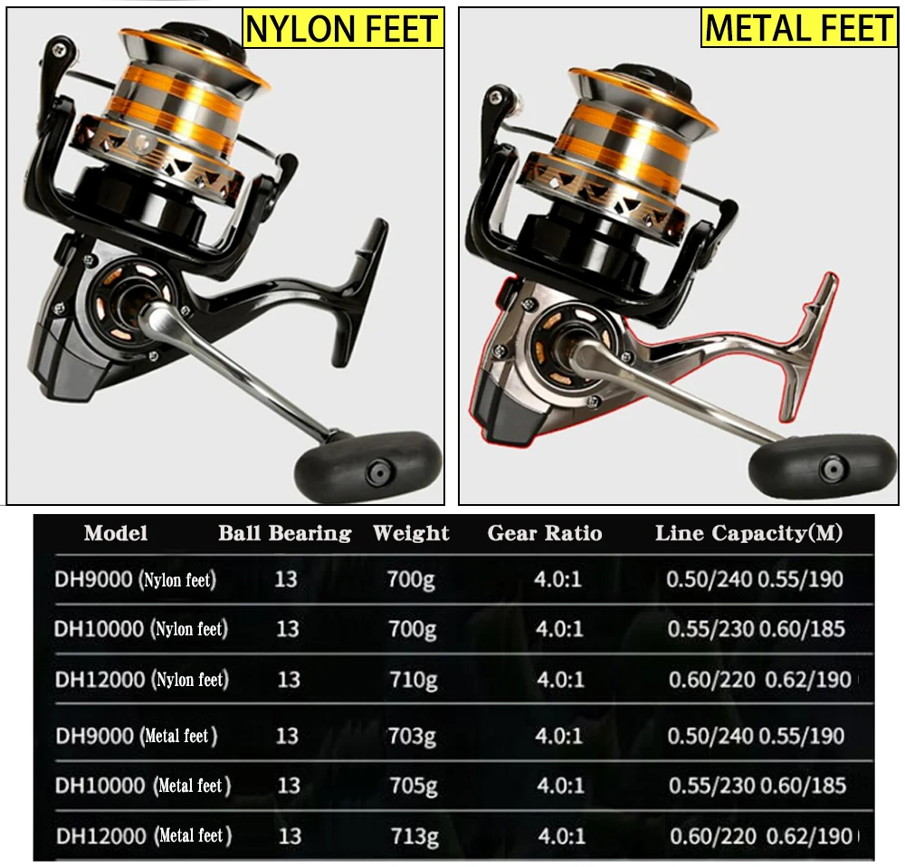 Información básicaTipo de carrete: carrete de pesca de tiro largoRelación de transmisión: 4,0: 1Rodamiento de bolas: 13Serie: 9000/10000/12000Clasificaciones del asiento del carrete: nailon y metalCaracterísticas del producto1. Super fuerza de arrastre, arrastre máximo 30 kg.2. Brazo de roca CNC, plegado de contraste y fuerte fuerza de tracción.3. Taza de alambre de tiro largo biselado, la línea de salida es más suave y no daña el sedal.4. Mango de goma suave, cómodo y sin saltos.Paquete incluido1 carrete de pesca