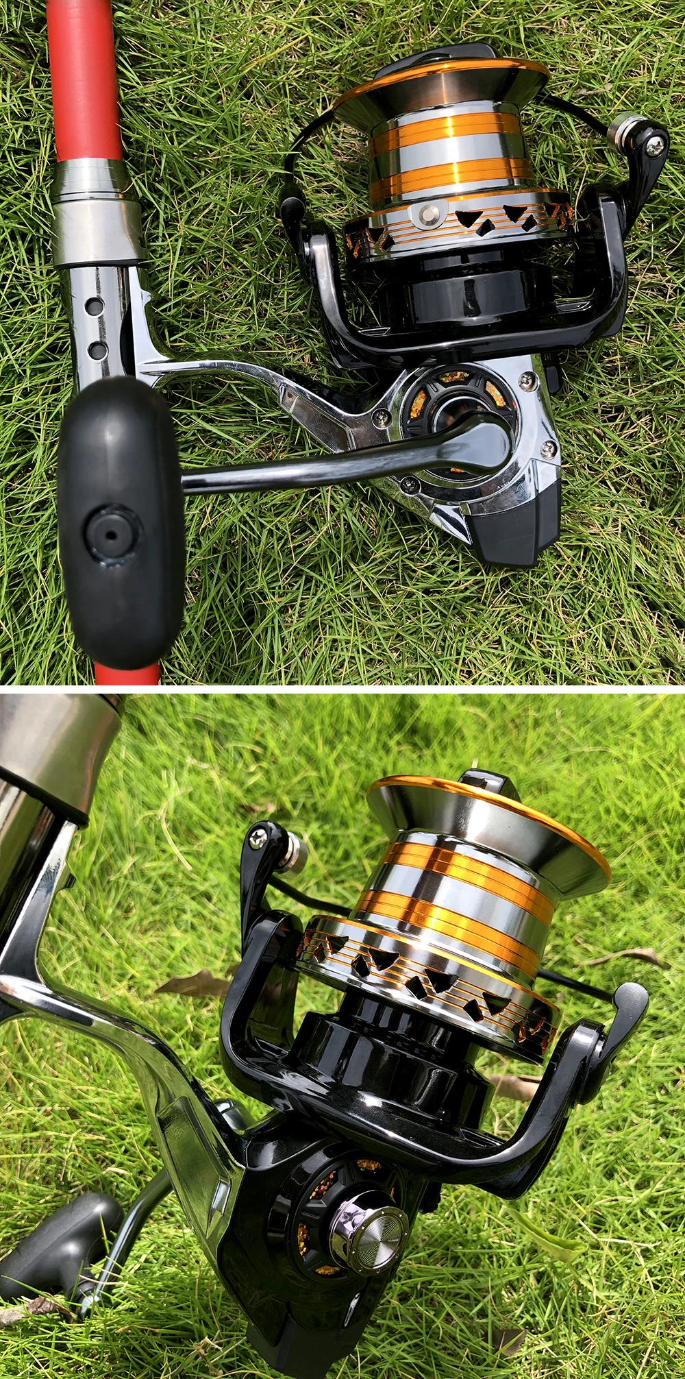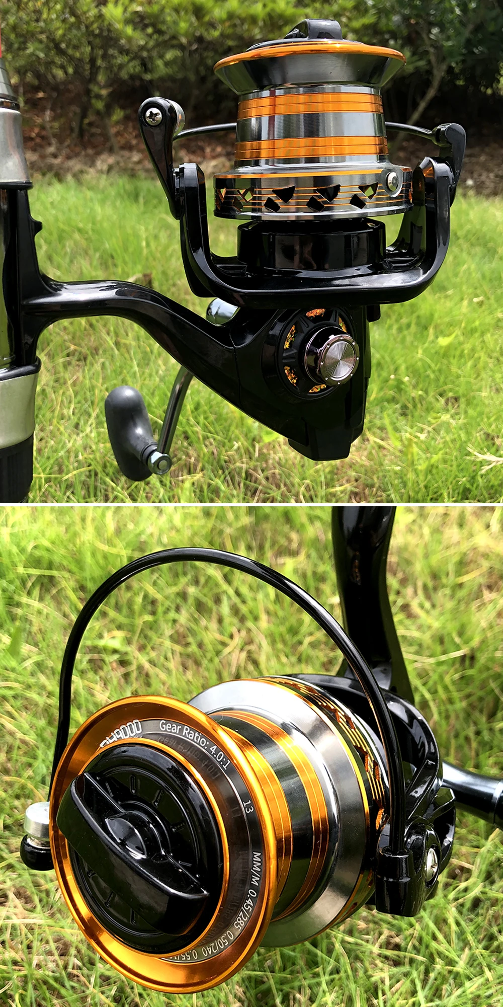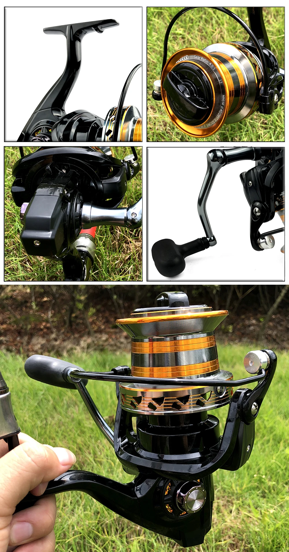Información básicaTipo de carrete: carrete de pesca de tiro largoRelación de transmisión: 4,0: 1Rodamiento de bolas: 13Serie: 9000/10000/12000Clasificaciones del asiento del carrete: nailon y metalCaracterísticas del producto1. Super fuerza de arrastre, arrastre máximo 30 kg.2. Brazo de roca CNC, plegado de contraste y fuerte fuerza de tracción.3. Taza de alambre de tiro largo biselado, la línea de salida es más suave y no daña el sedal.4. Mango de goma suave, cómodo y sin saltos.Paquete incluido1 carrete de pesca