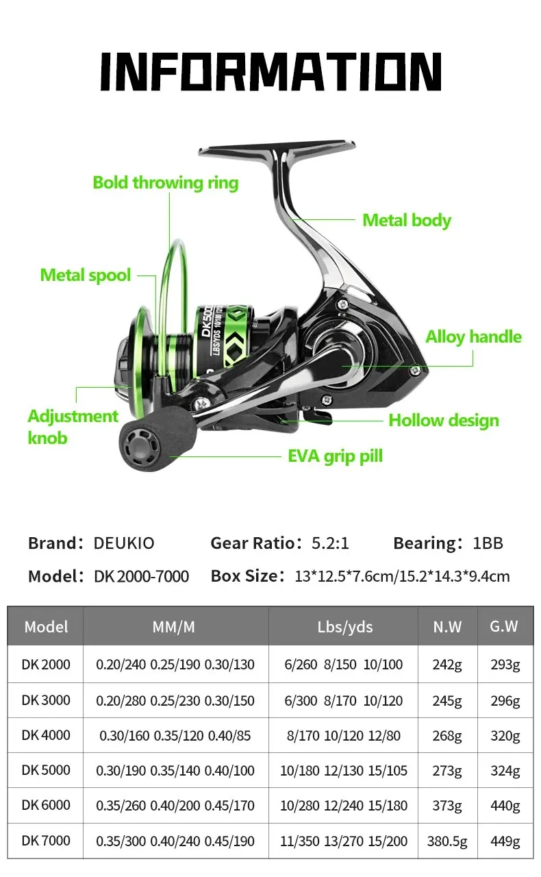 • Uso dual para agua dulce y agua de mar:Este carrete de pesca es perfecto tanto para la pesca de agua dulce como de agua de mar, lo que lo convierte en una herramienta versátil para cualquier pescador.