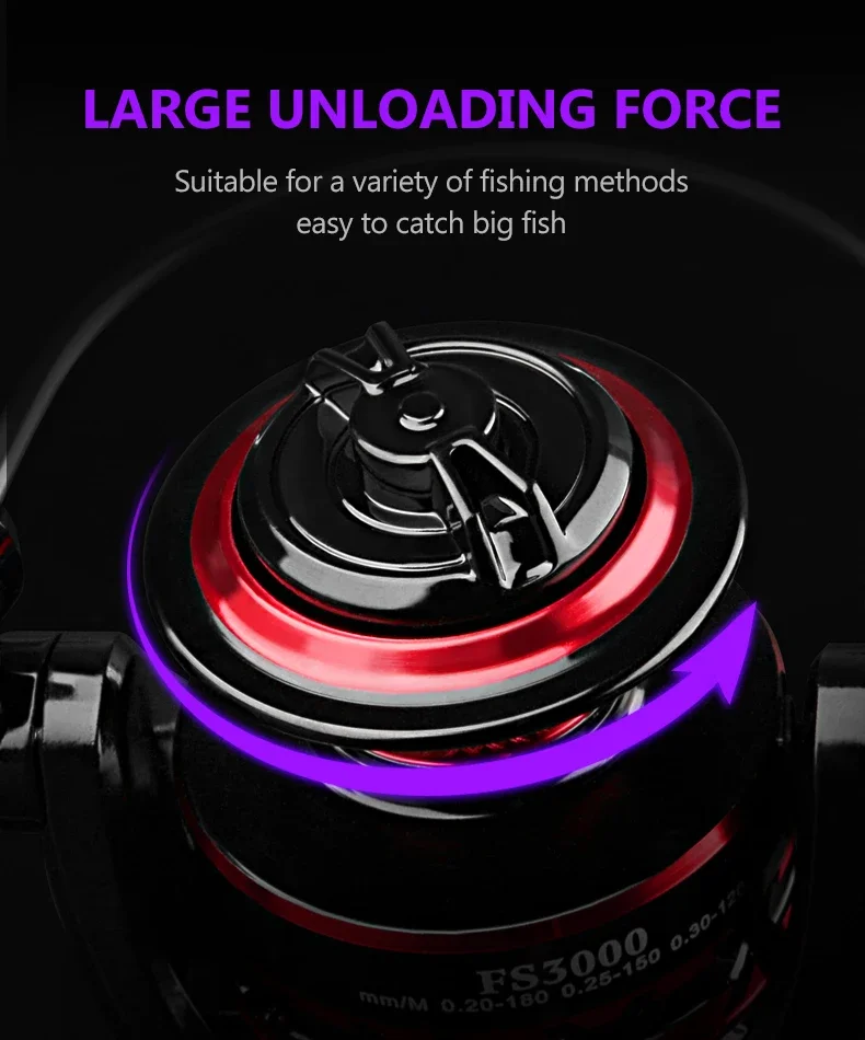 Carrete de pesca totalmente metálico, negro y rojo, agua dulce, agua de mar, doble uso, arrastre máximo, carrete giratorio de 12Kg, aparejos de pesca de carpa duraderos, 2000-7000